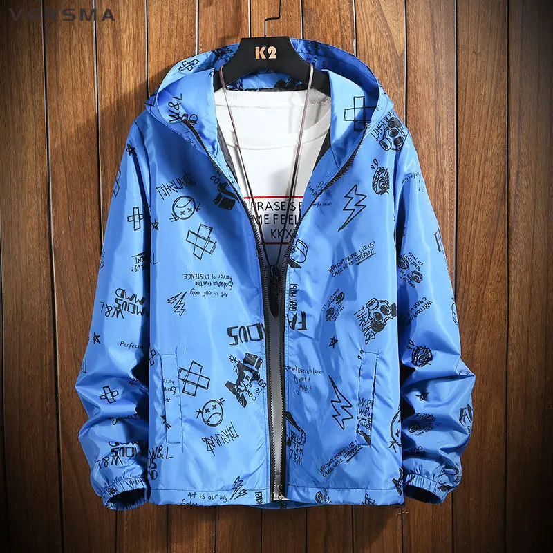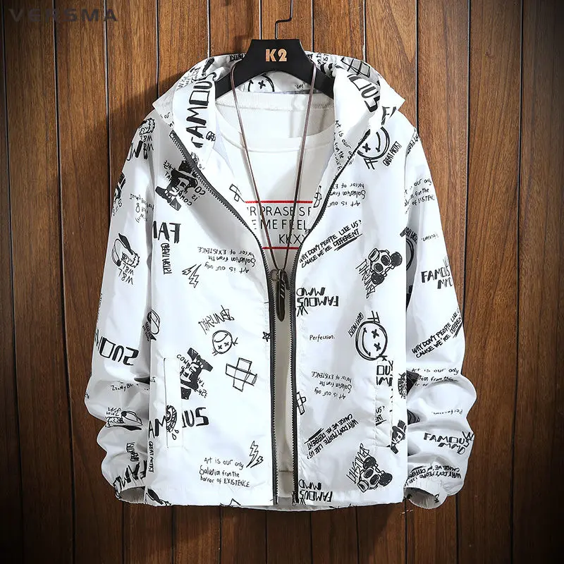 VERSMA 2019 корейский Харадзюку тренд напечатанный мужской бомбер куртки осень хип хоп Уличная негабаритная ветровка с капюшоном дропшиппинг