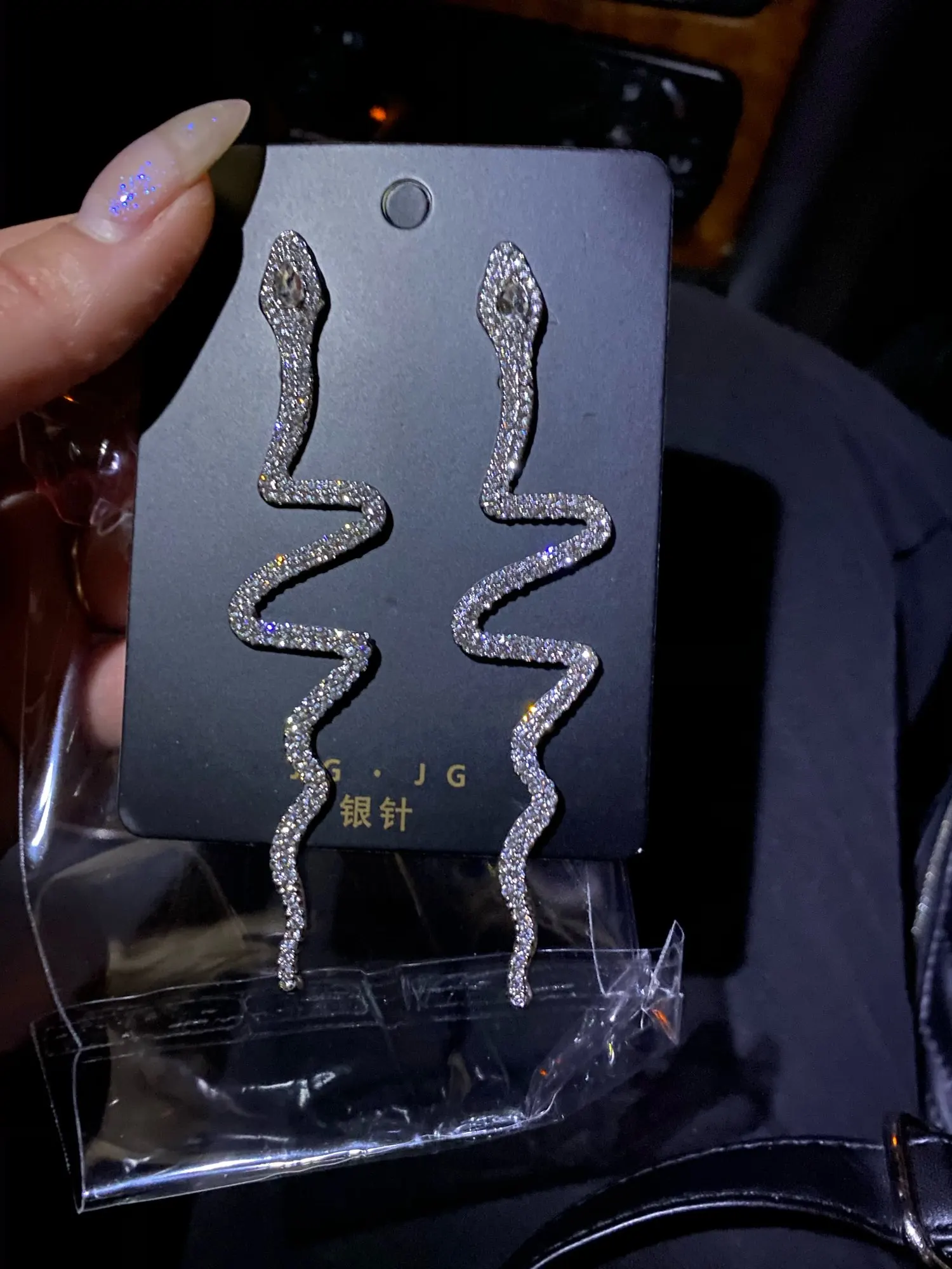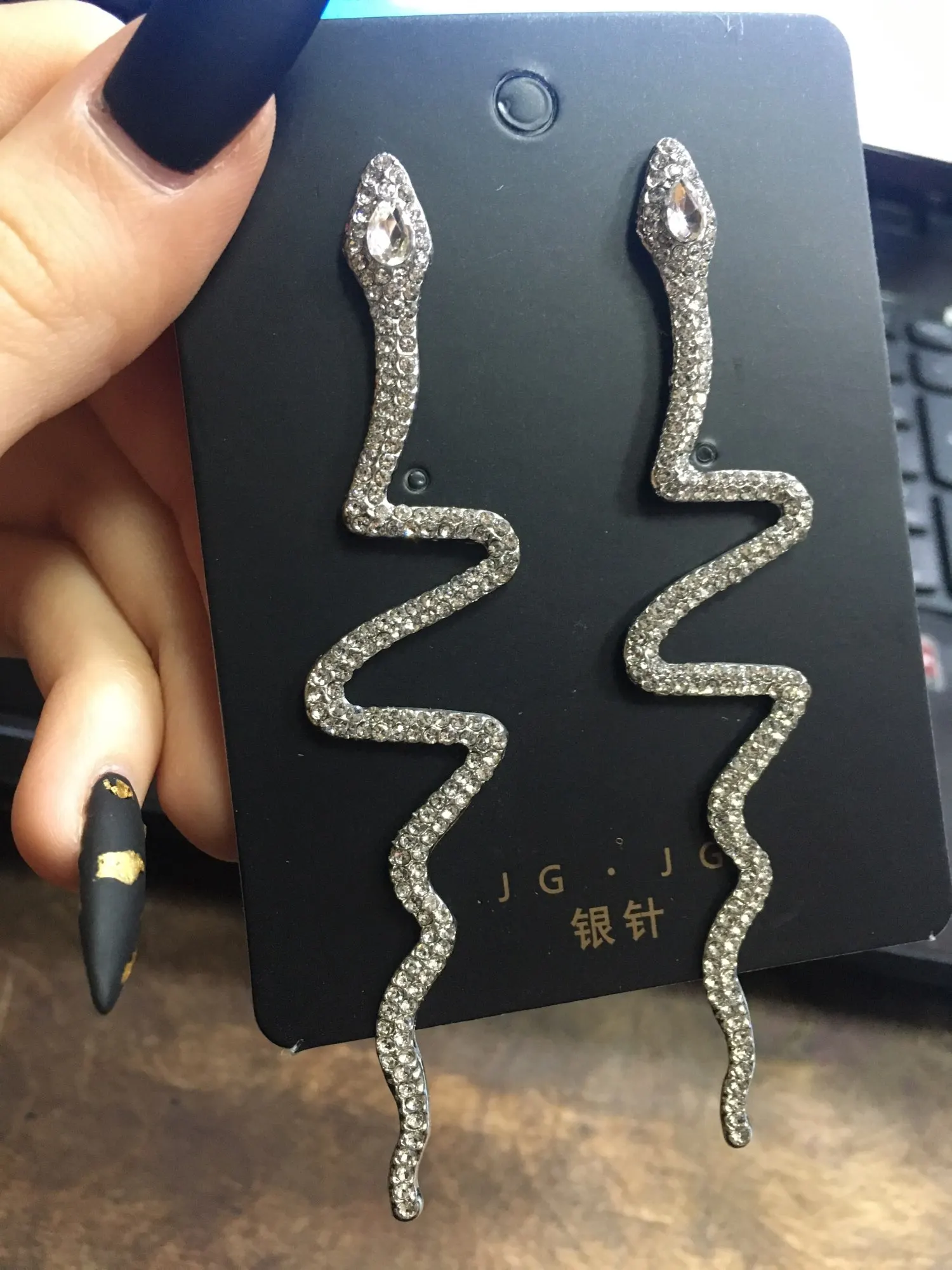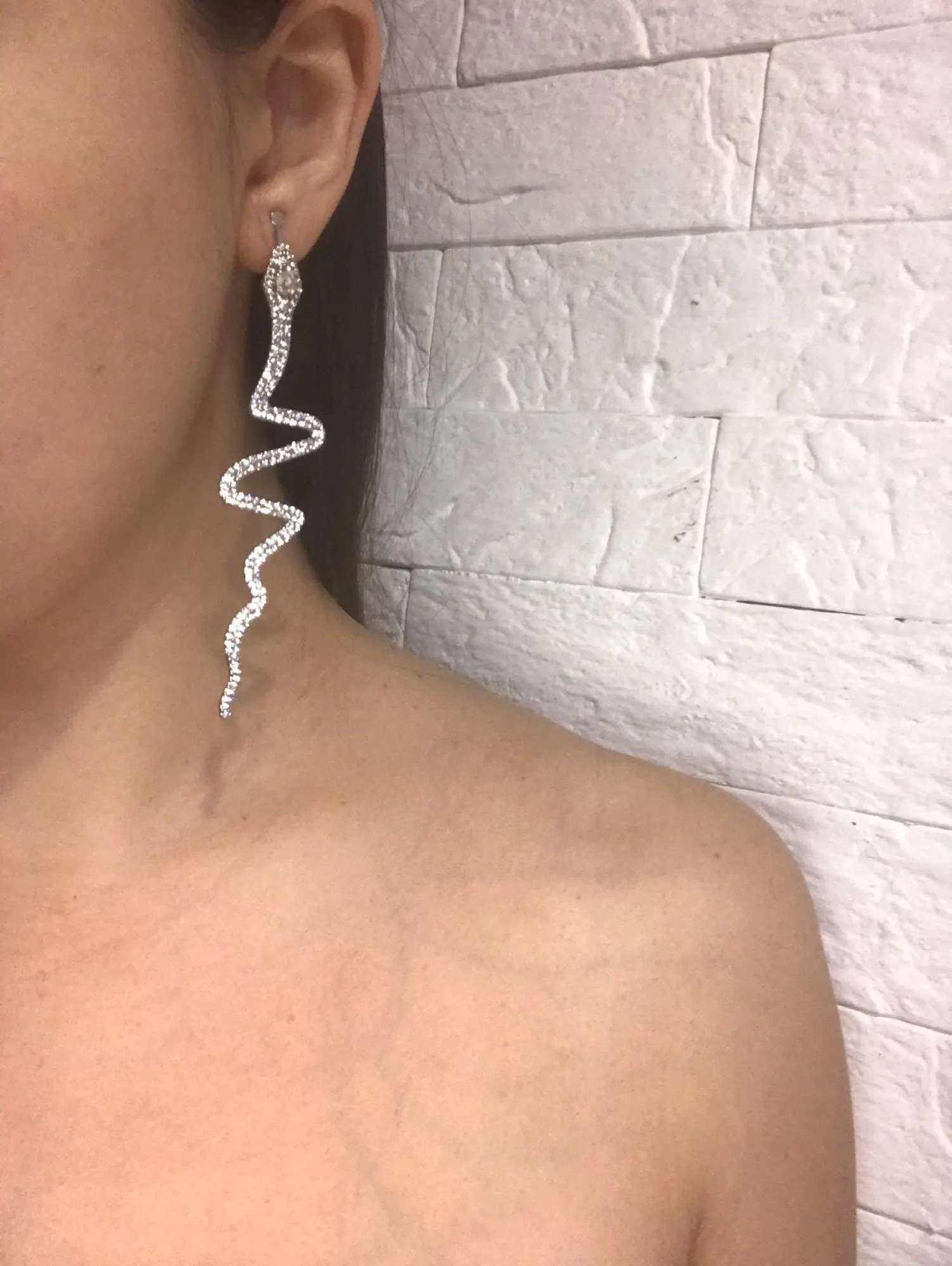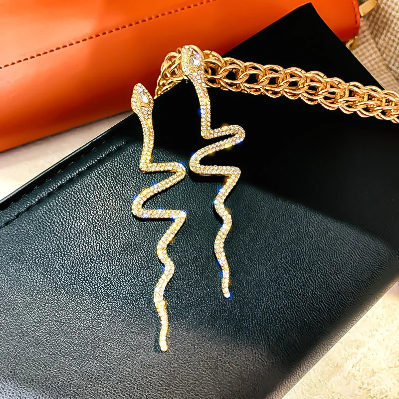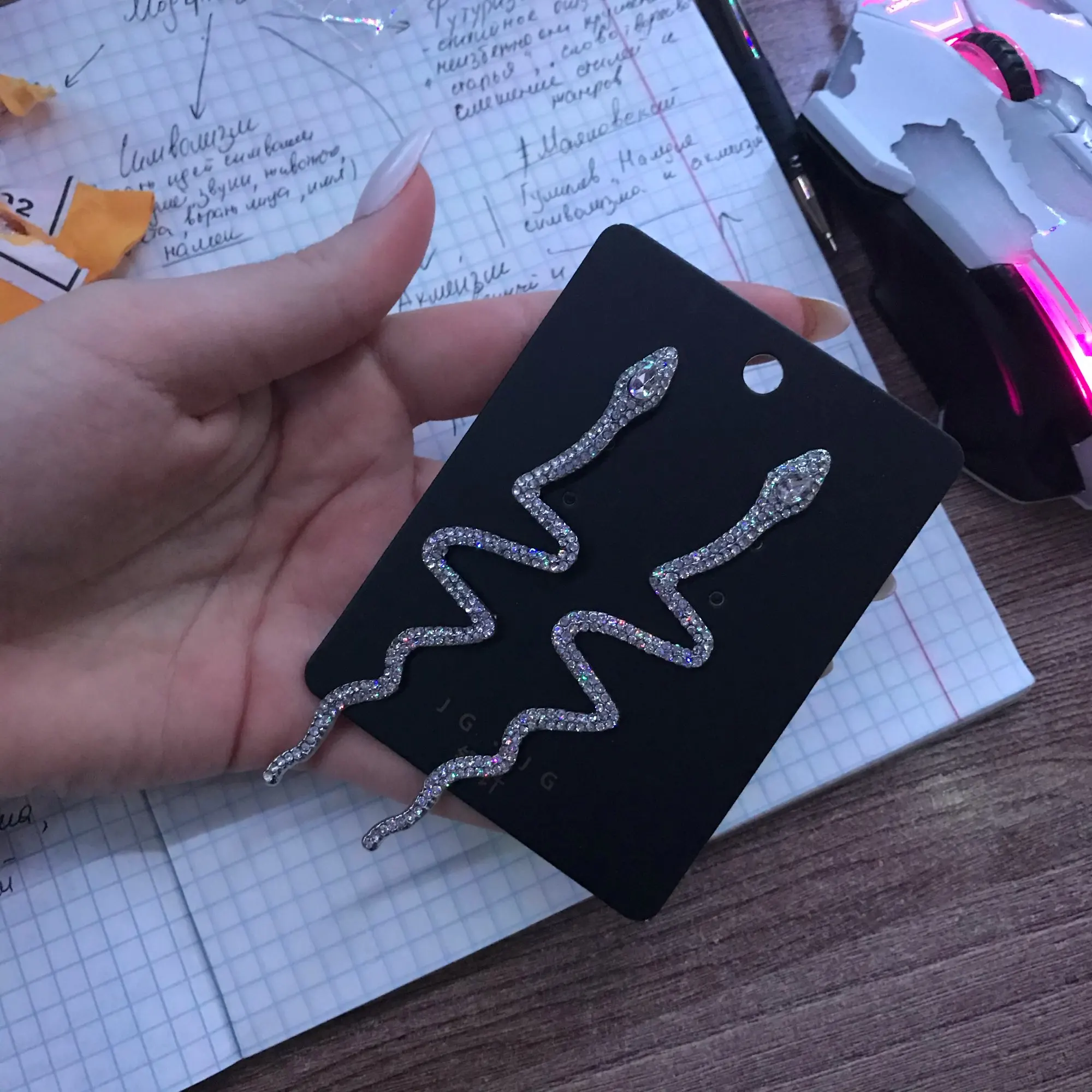 Женские Висячие серьги FYUAN, блестящие стразы в форме змеи, свадебные украшения, длинные кисточки кристаллы