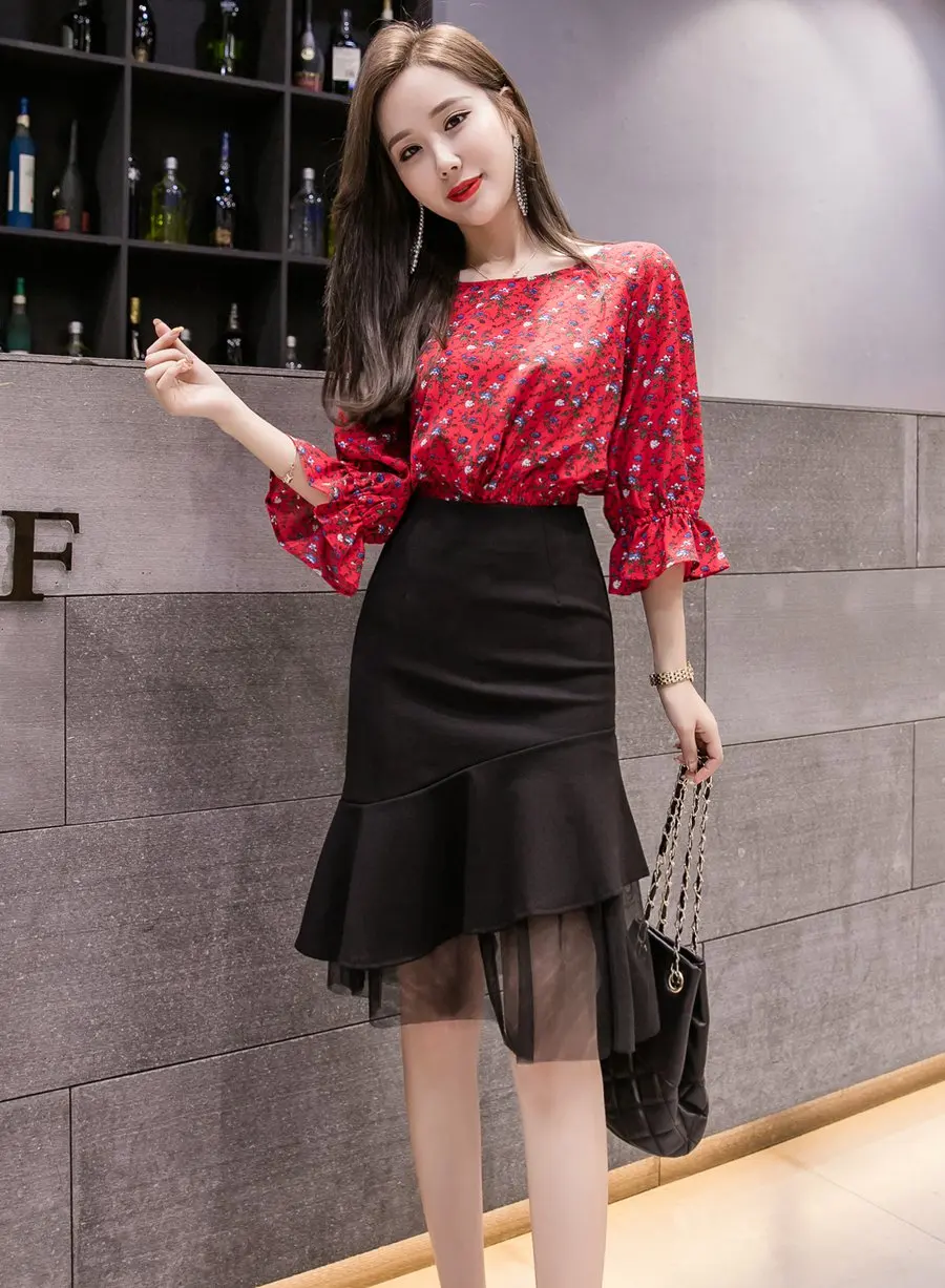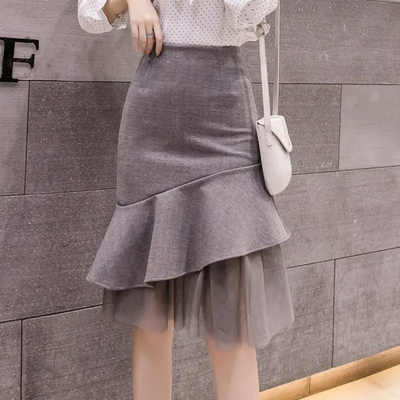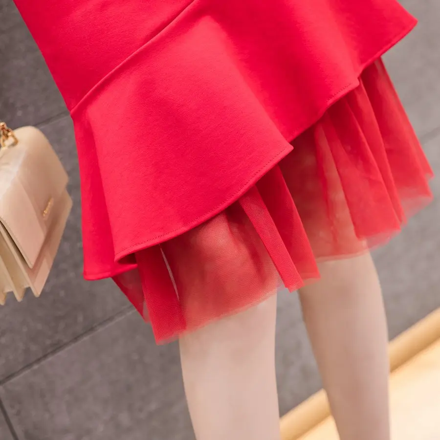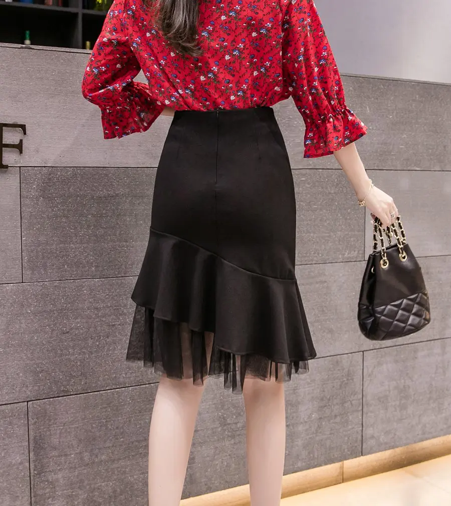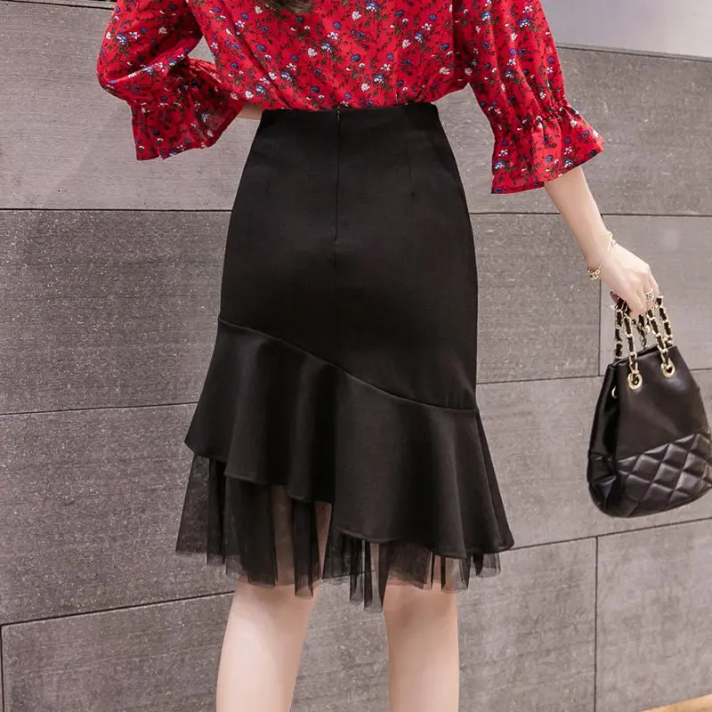 Сетка Лоскутная Красные Юбки Женщины 2019 Плюс Размер Осень Зима Повседневная Юбка с Высокой Талией Черный Офис Женские Корейские Юбки-Карандаш