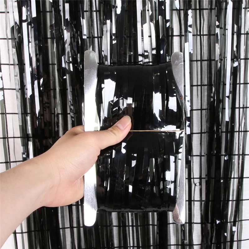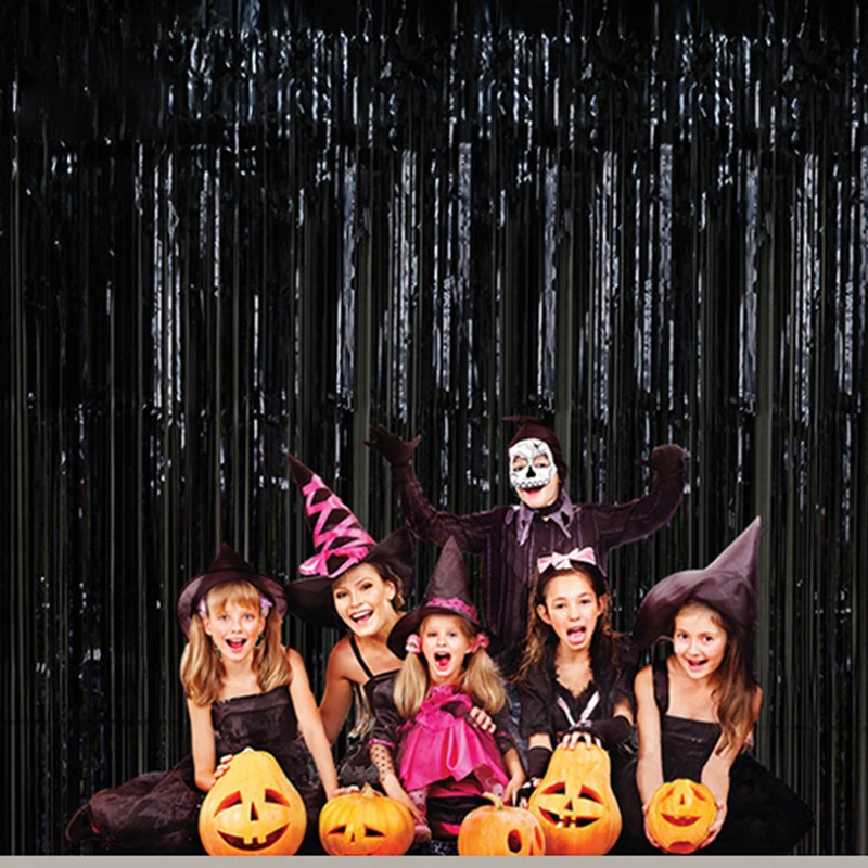 Занавеска из фольги на Хэллоуин, черные занавески вечерние, свадьбы, дня рождения, вечеринки, украшения, занавески из фольги, украшения на Хэллоуин