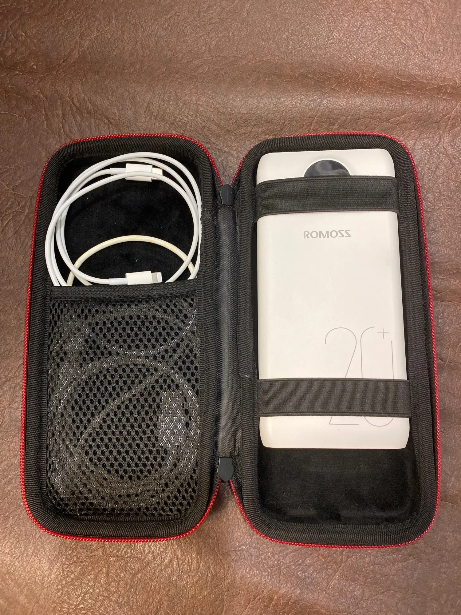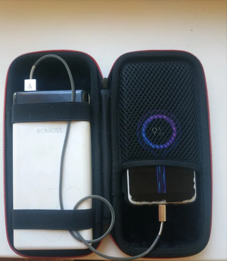 чехол жёсткий как и хотел, внутри место достаточно для кабеля и зарядки. Брал для ромос 8+ 30000. советую