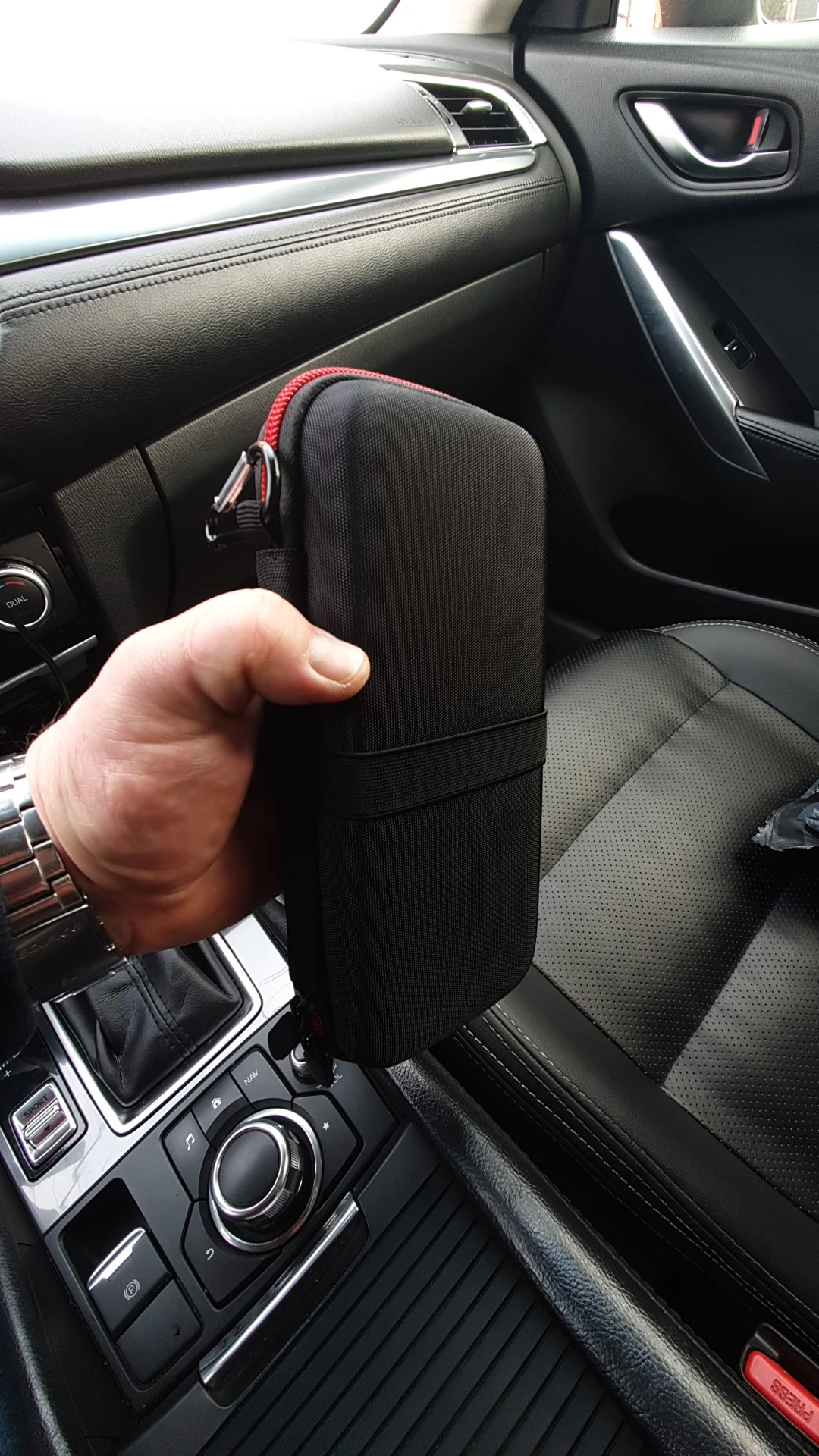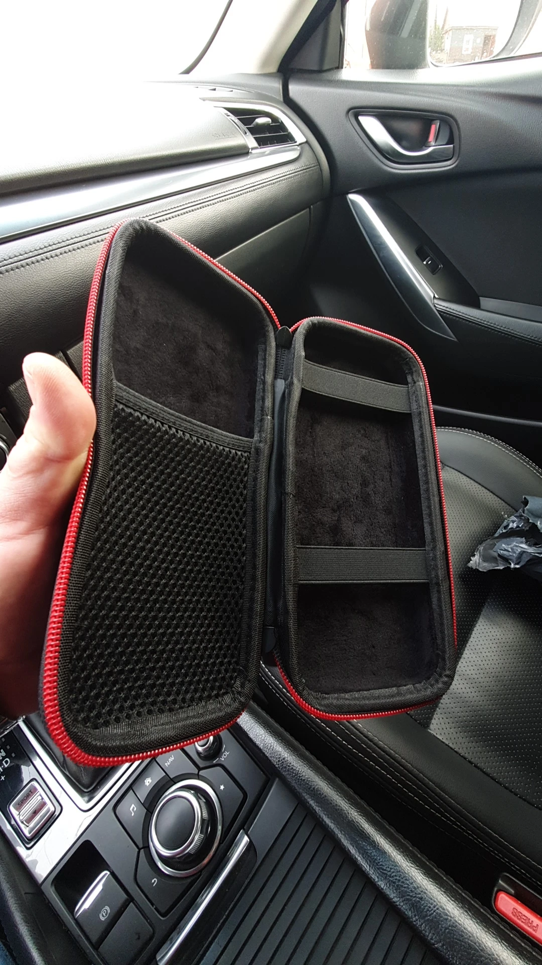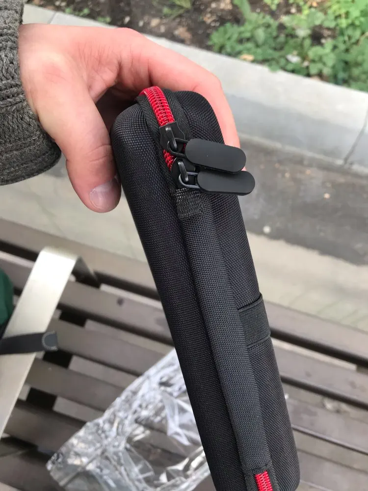 А вот этот товар крутой!В отличие от зарядки,которая сгорела через 30 секунд.Сшит добротно,молния классно работает,без запинок,резинки тугие,держат хорошо,внутри отделка чёрной алькантарой (как любит Антон автоман),карабин в комплекте,чтобы крепить на пояс альпиниста или просто ремень.Собачки отделаны приятным софт-тач покрытием,не скользят при открывании,короче вот это вещь!