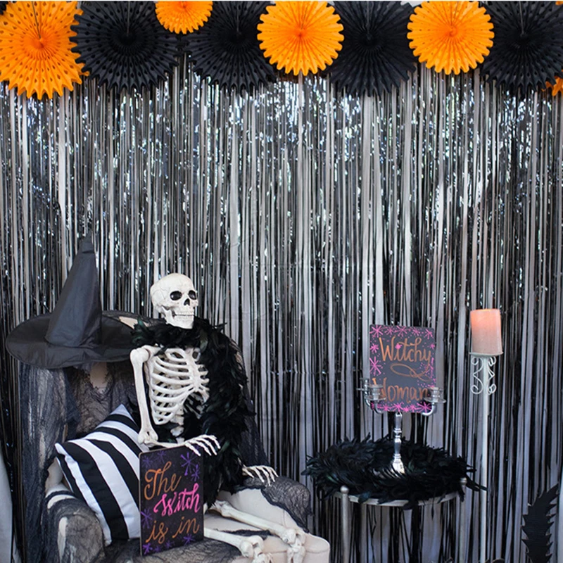 Декор для Хэллоуина занавеска из фольги черные занавески для вечеринки украшение для свадьбы дня рождения вечеринки занавеска из фольги с бахромой для Хэллоуина