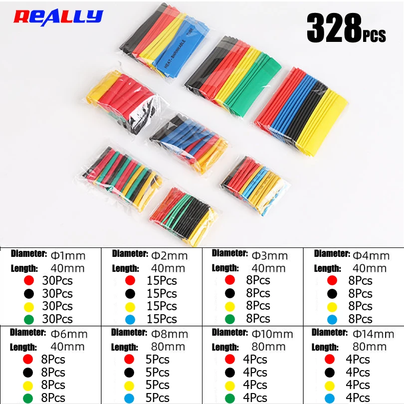 Термоусадочная трубка 2:1, смешивание цветов, электрическая изоляция, искусственная комбинация, ассорти, обмотка для проводов, набор для самостоятельной сборки