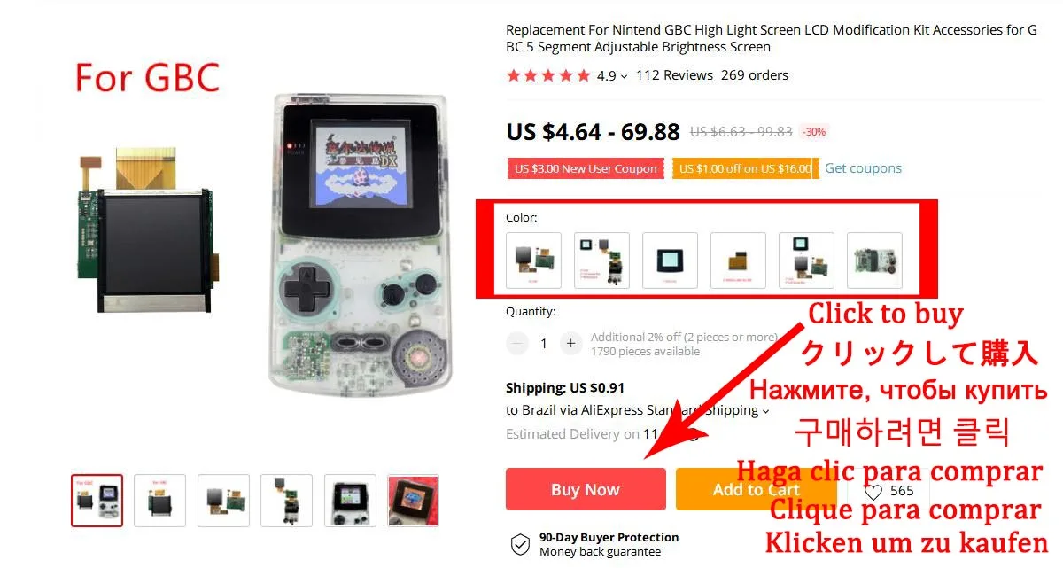 1. Подходит для комплекта модификации ЖК-дисплея Nintendo GBC High светильник.