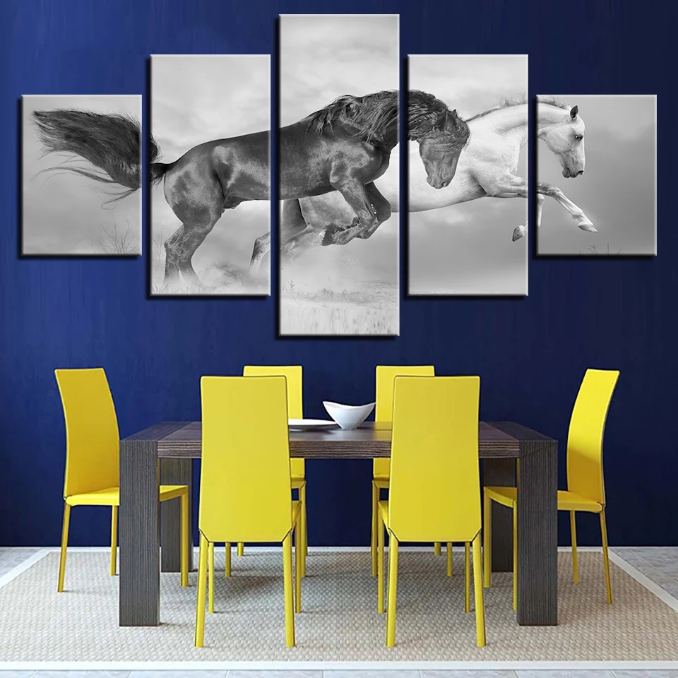 Домашний декор Холст Печатный 5 панельный животное лошадь постер пейзаж Картина современное настенное искусство HD картинки Гостиная модульная структура