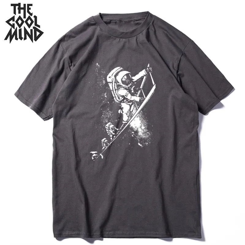COOLMIND, 100% хлопок, с коротким рукавом, летняя, космическая луна, Мужская футболка, повседневная, летняя, свободная, Мужская футболка, крутая футболка, Мужская футболка