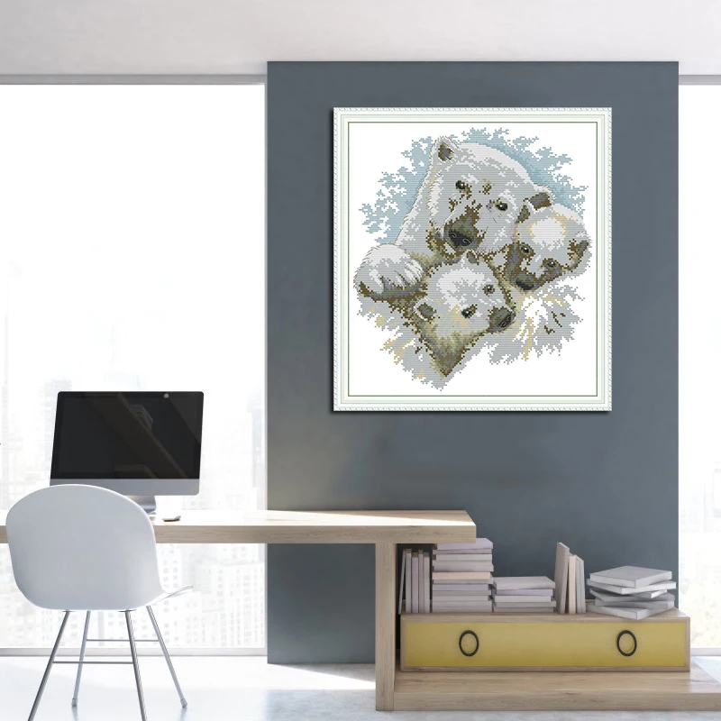 Joy Sunday, полярный медведь, семейный набор для вышивки крестом DMC, детский ручной работы, набор для рукоделия, для украшения дома и подарка