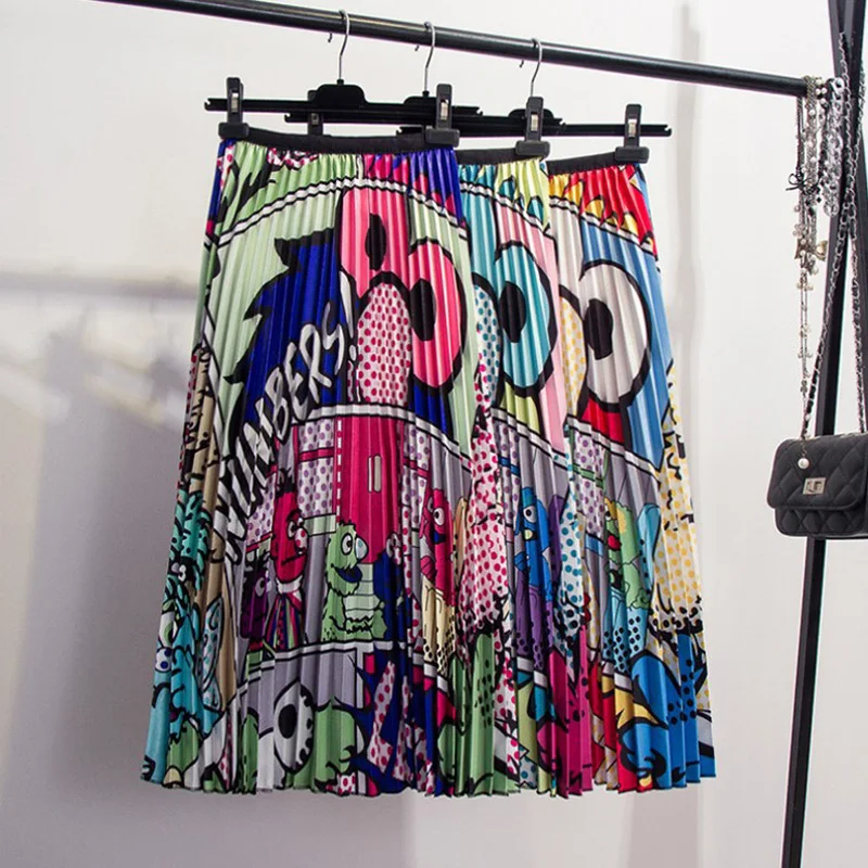 2021 летняя Осенняя Женская юбка с мультяшным принтом средней длины...