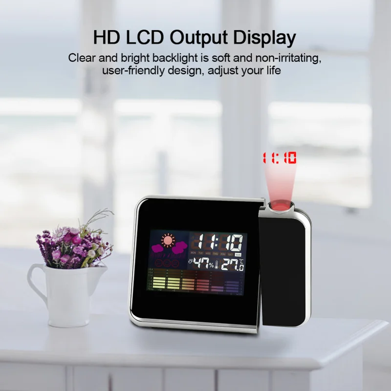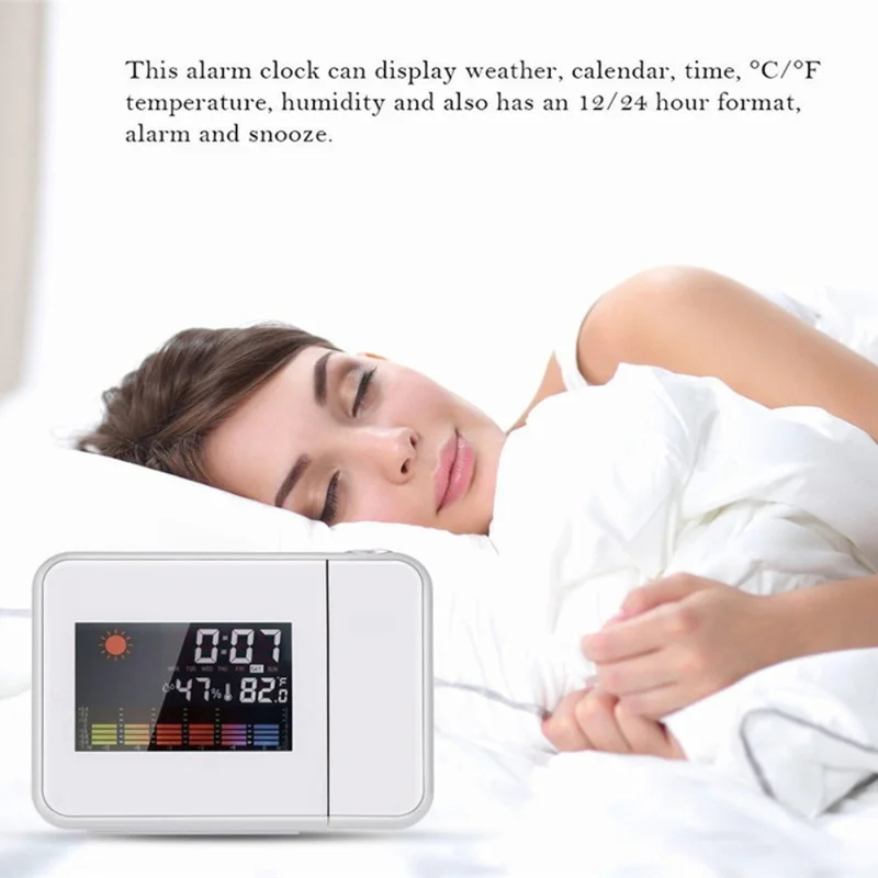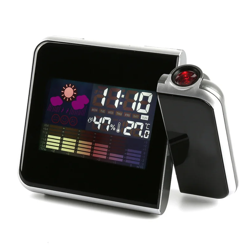 Получите всю необходимую информацию, чтобы пройти через день после того, как вы проснетесь! Эти часы имеют полноцветный экран, который отображает время, температуру, влажность и проектирует время на любую стену или потолок. Он также имеет функцию будильника, поэтому вы никогда не пропустите удар. Работает на 2 батареях AAA (не входят в комплект).