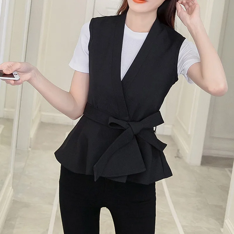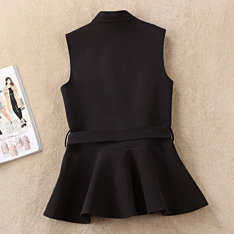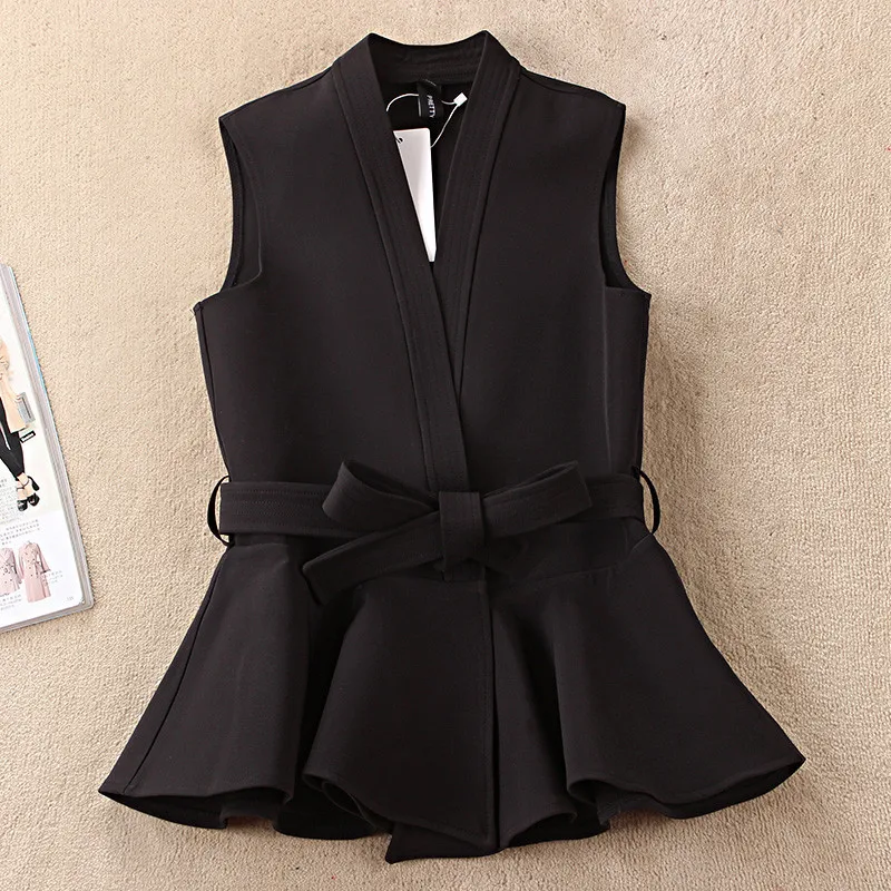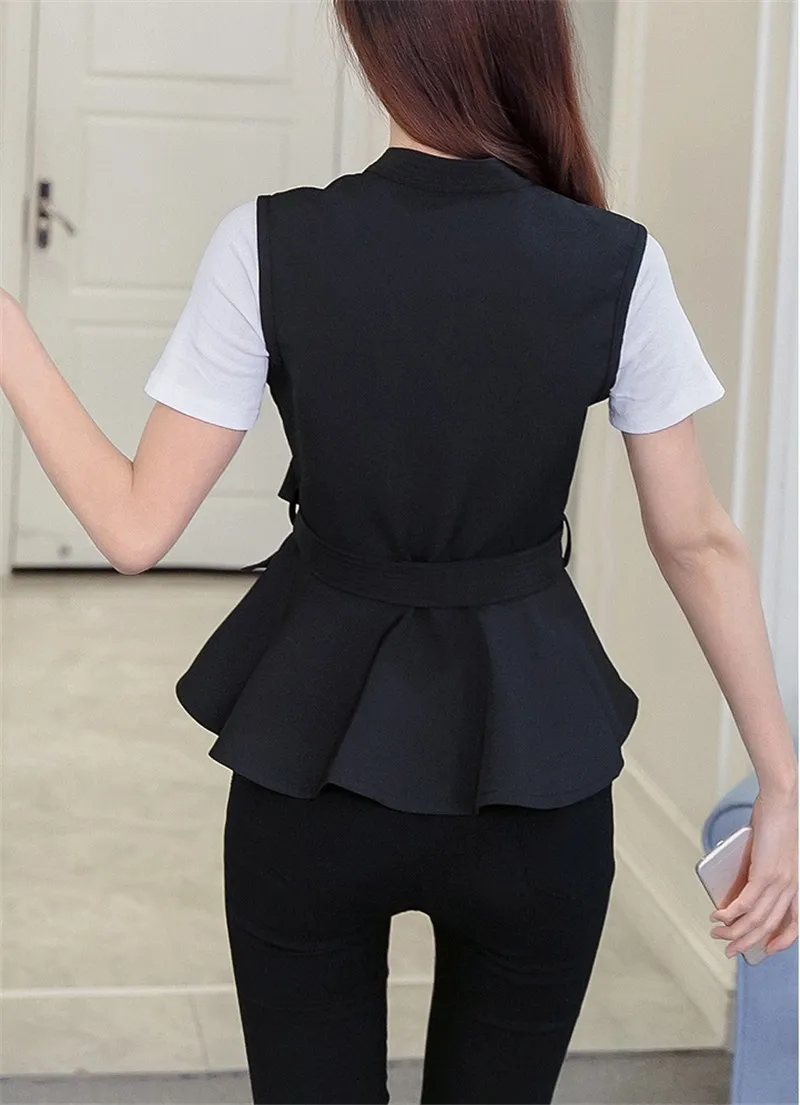 Женский шерстяной жилет, облегающий черный жилет с оборками в Корей...