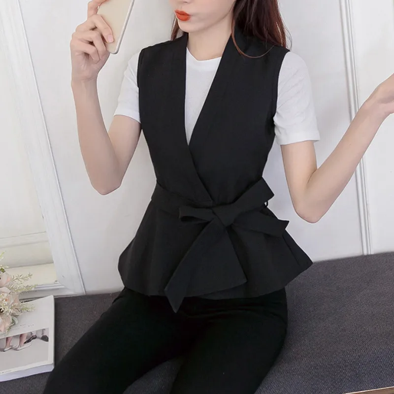 Новинка корейский женский черный пиджак жилет Повседневный тонкий ж...
