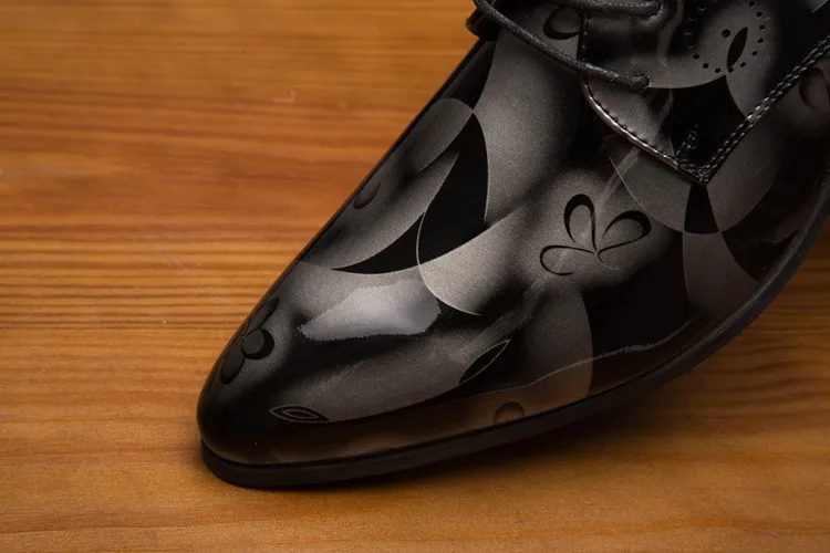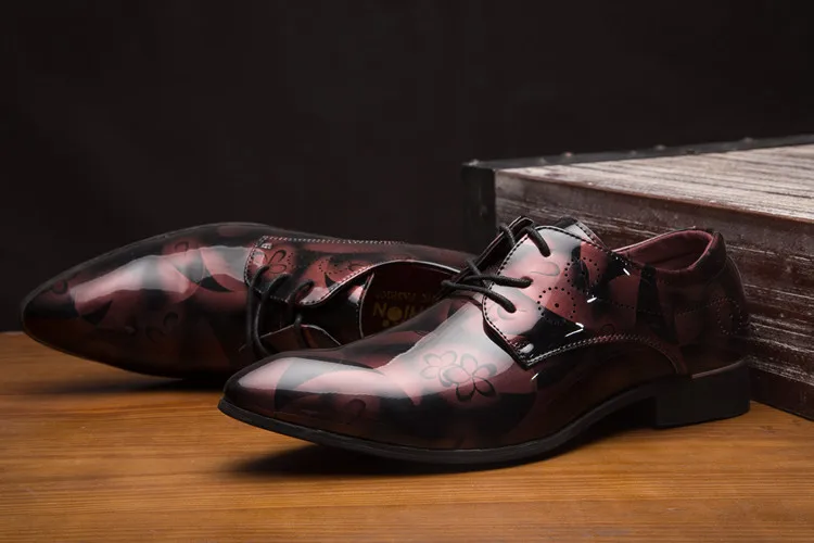 Туфли мужские из лакированной кожи, заостренный носок, цветочный узор, формальные, броги, элегантные свадебные туфли, классические, размеры 38-48