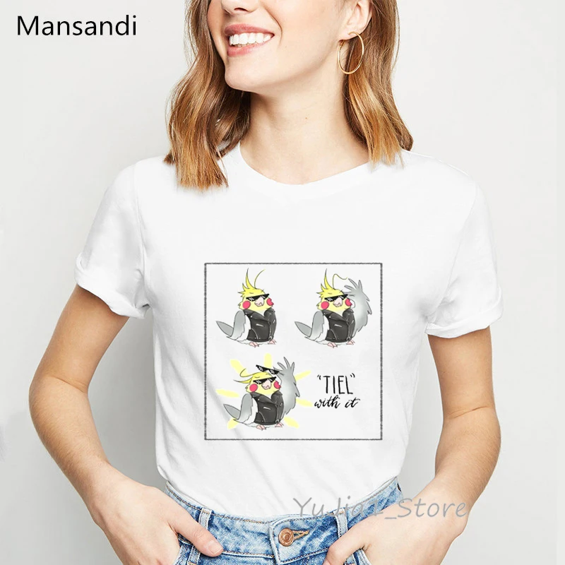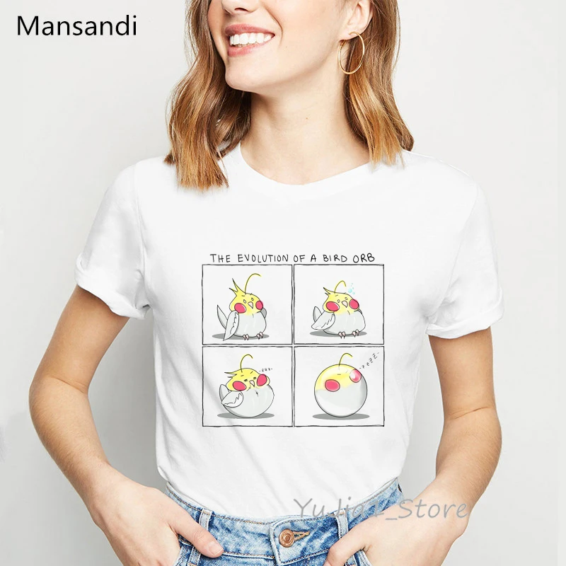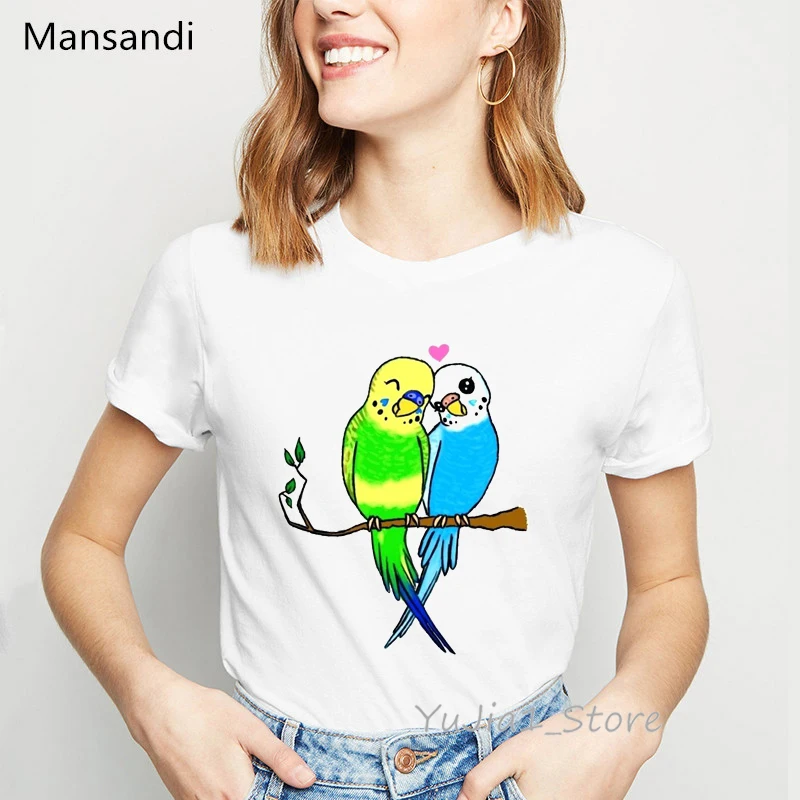 Красочные Птицы любовь Радуга Печать Футболка женская одежда 2021 полные кокатили Забавные футболки женские Харадзюку кавайные рубашки топы