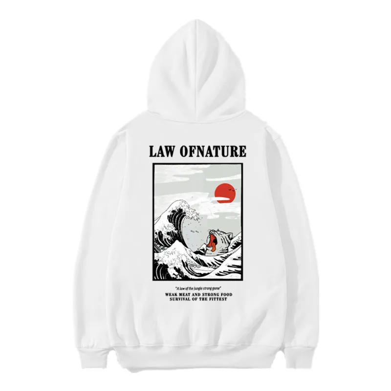 Японские флисовые толстовки с забавным принтом кота и волн, зима 2019, японские повседневные белые толстовки в стиле хип-хоп, уличная одежда в стиле очень странные дела