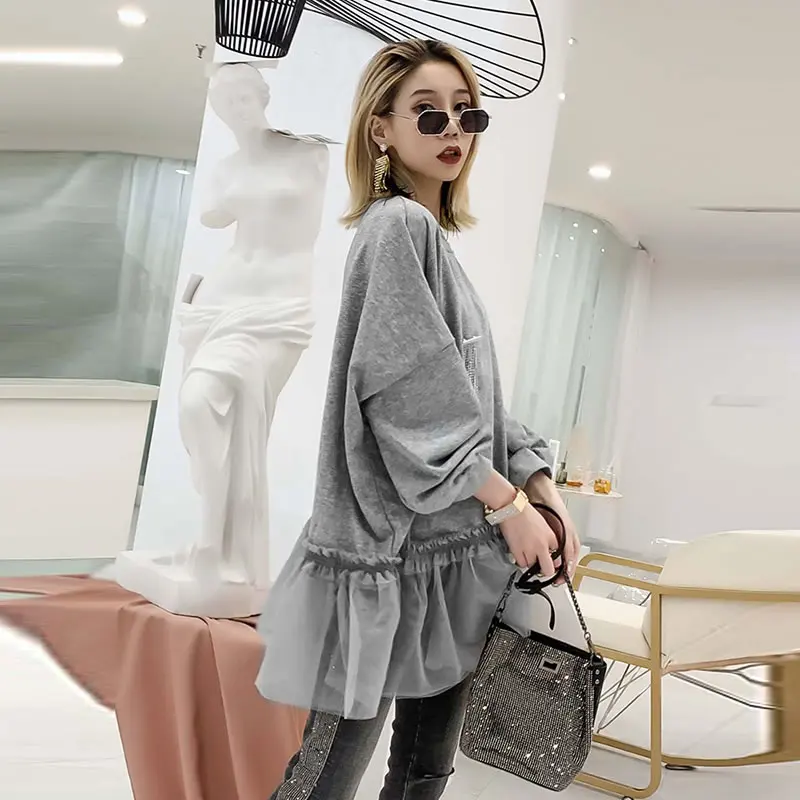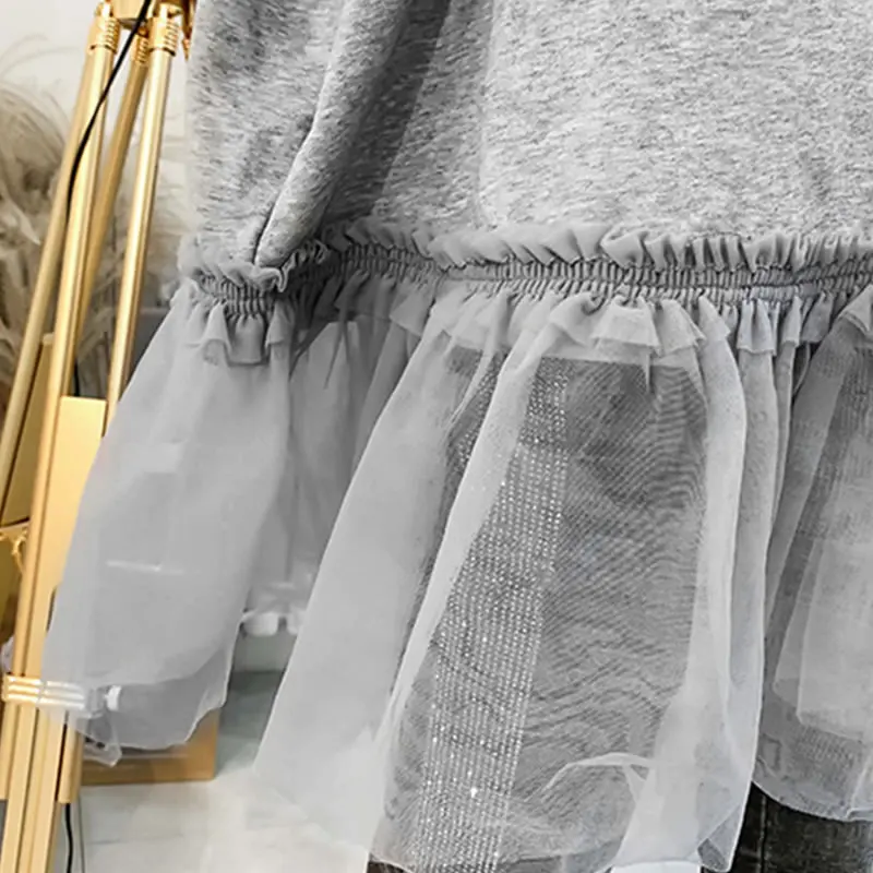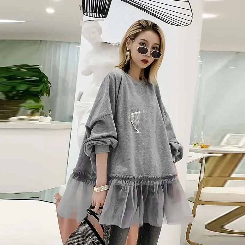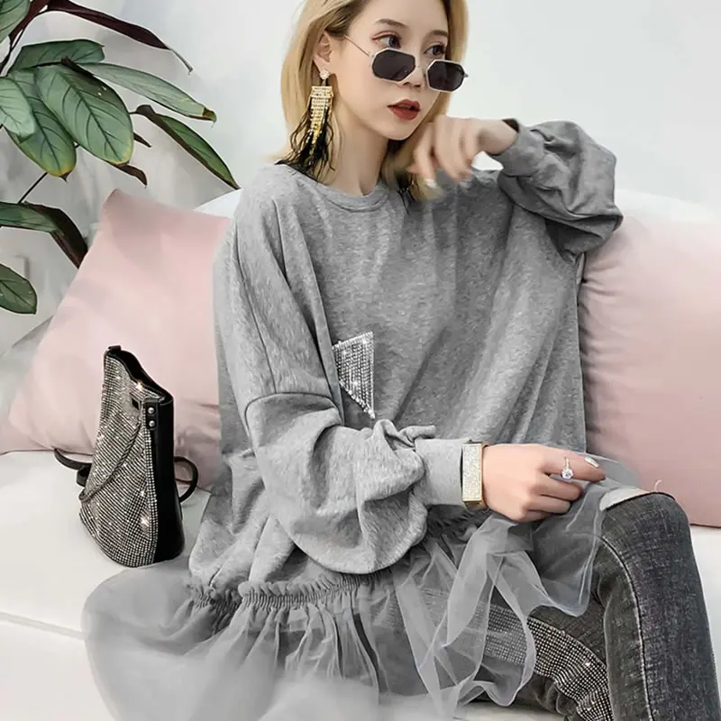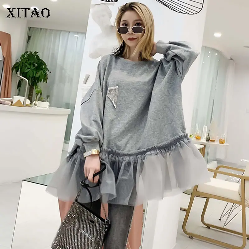 Женский плиссированный Свитшот XITAO, элегантный пуловер в стиле пэчворк с сеткой, со стразами, модель WQR1548 на осень, 2019