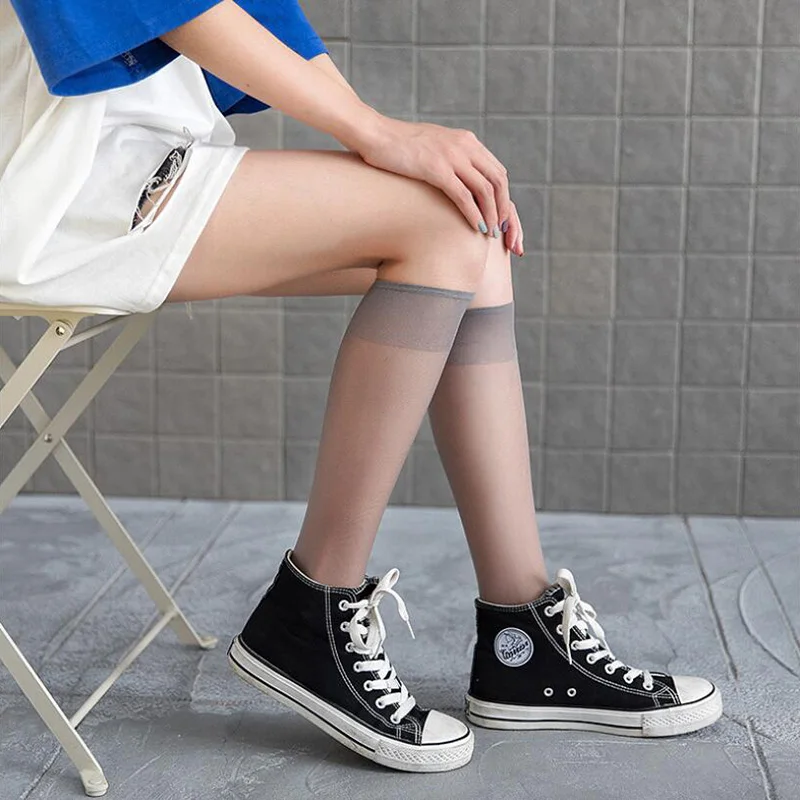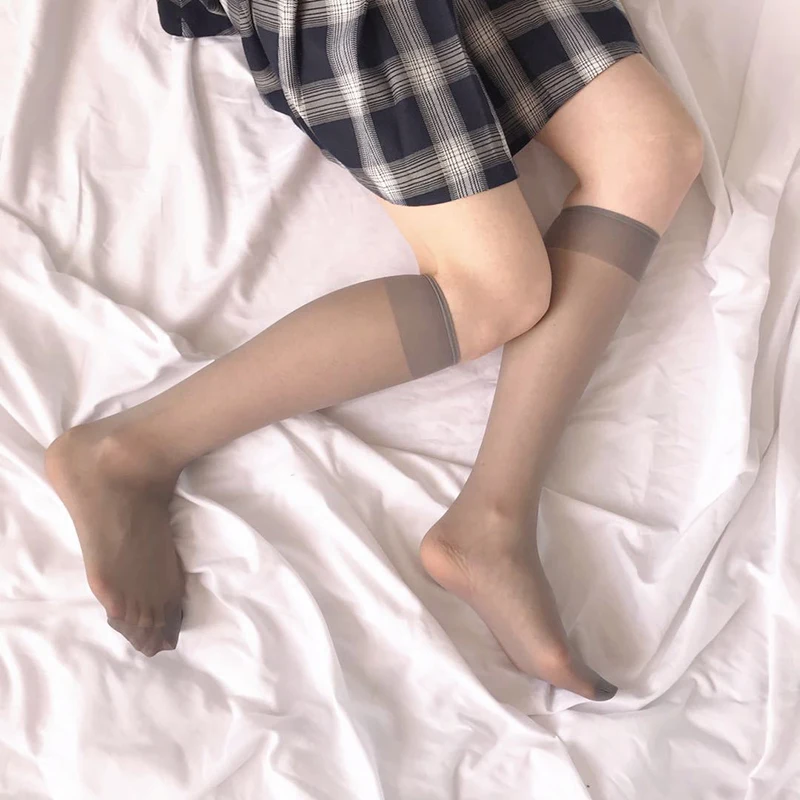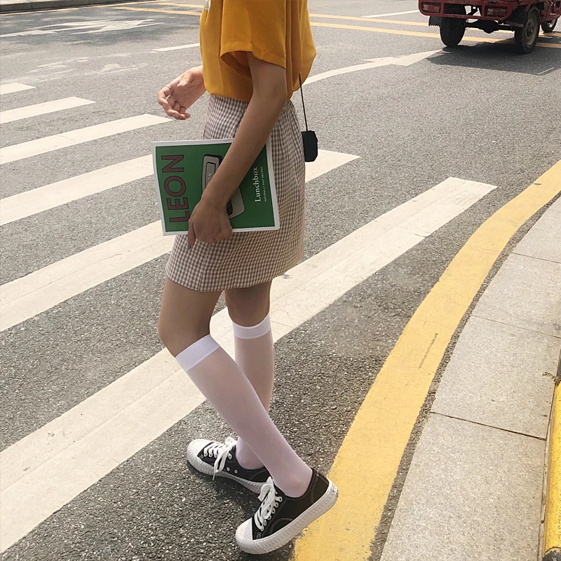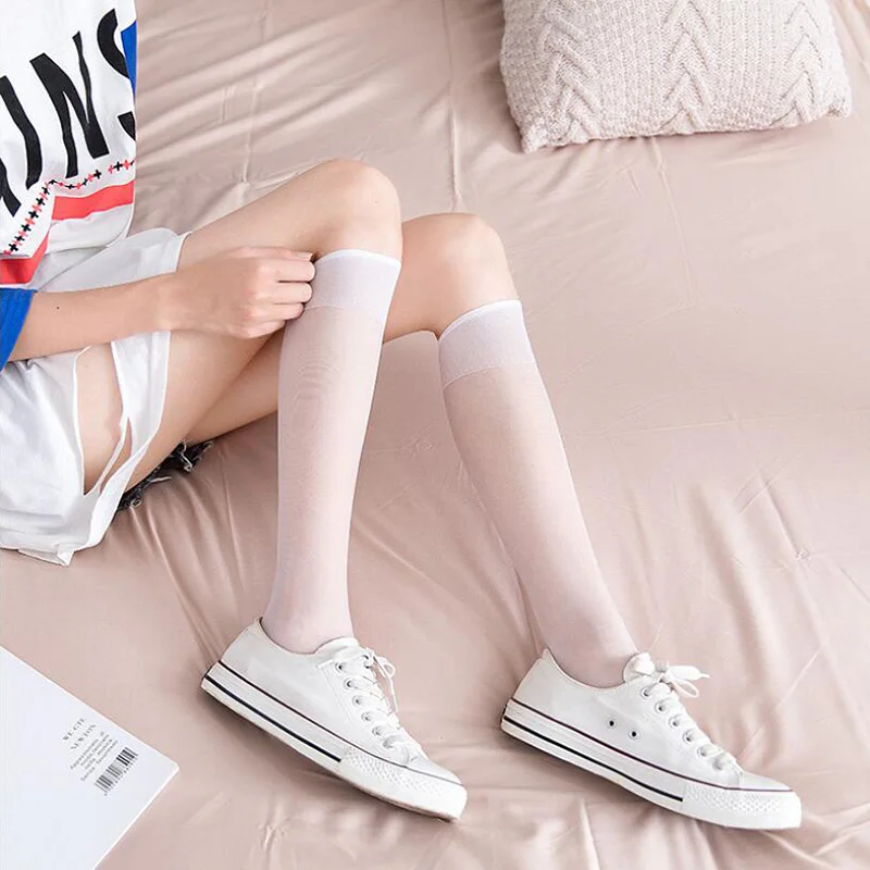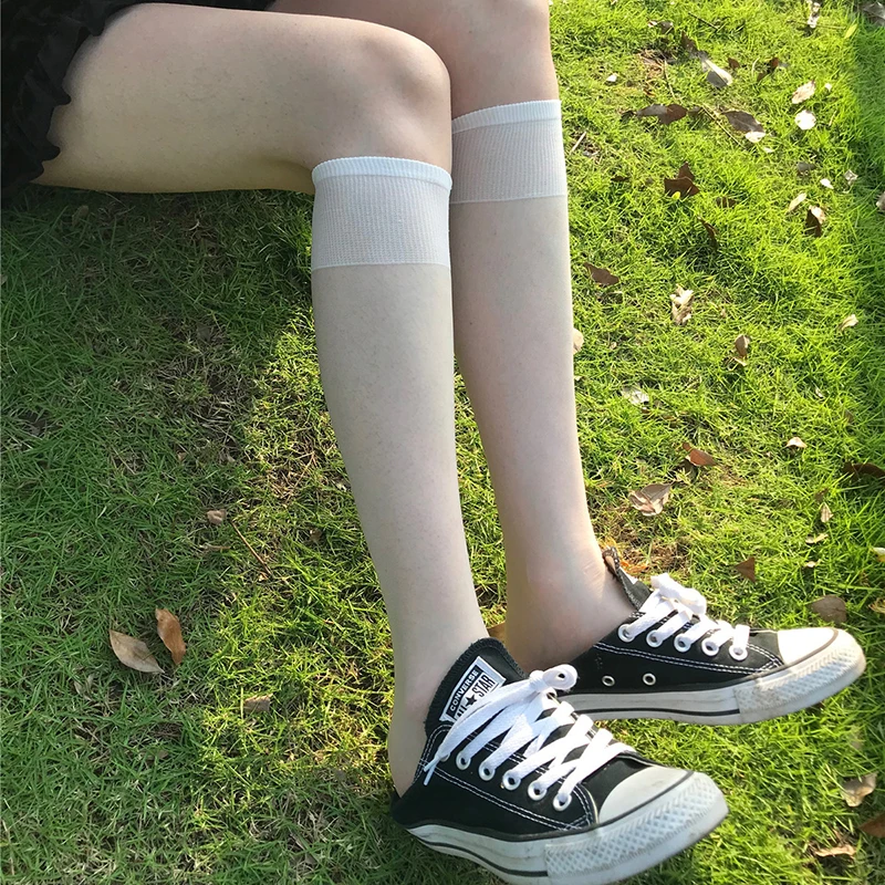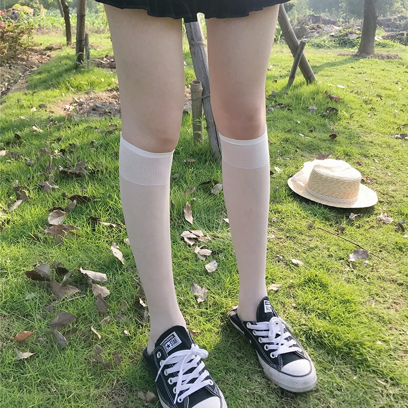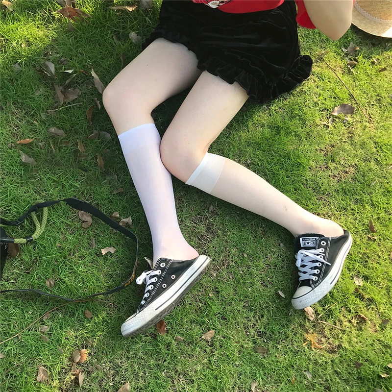 Носки женские высокие до колена, пикантные ультратонкие нейлоновые гольфы в японском стиле, прозрачные чулки для девушек, белые эластичные, на лето