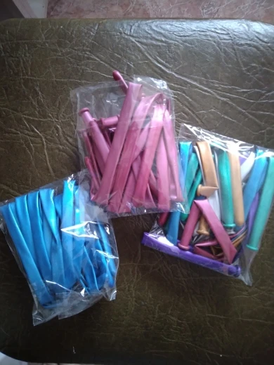 Шарики пришли , длинные на вид очень красивые , попробовали их надуть , но они дубенные какие-то из них чего не скрутишь! А круглые ещё не надували!