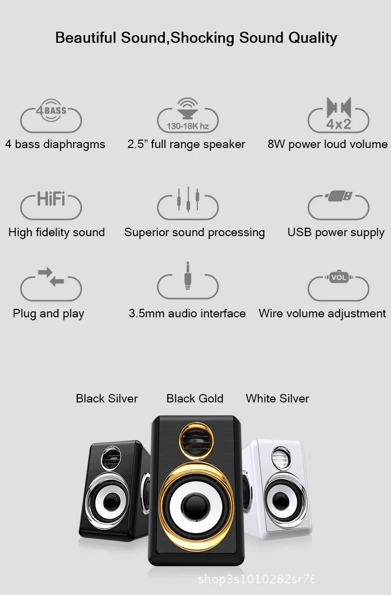 1 пара USB + AUX проводные компьютерные колонки с усилением басов 4 диафрагмы для ноутбука настольного телефона 8 Вт громкоговоритель высокой мощности