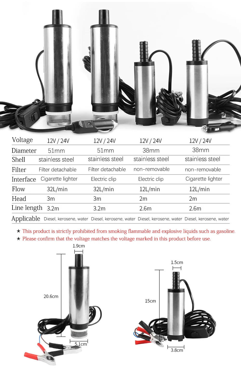 Насос погружной Электрический, 12 В, 12 лмин, 3851 мм, 12 В, 24 В