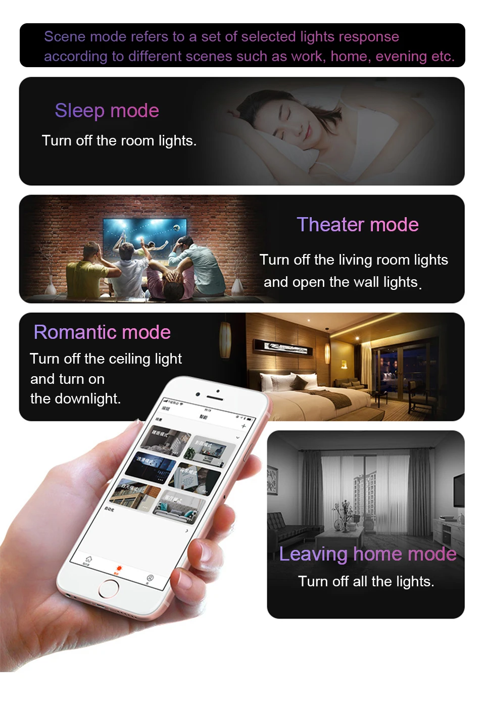 A. Для правильной работы этого интеллектуального выключателя требуется нейтральный провод. B. Пожалуйста, убедитесь, что ваша коробка может установить этот продукт перед покупкой. C. На разных мониторах будут отображаться разные цветовые эффекты, товар зависит от фактического полученного товара. D. Функциональный дисплей в описании предназначен только для справки, пожалуйста, используйте и установите в соответствии с фактической ситуацией. Приложение может быть обновлено, эффект дисплея будет другим.