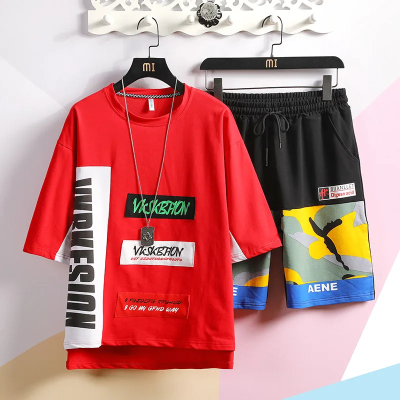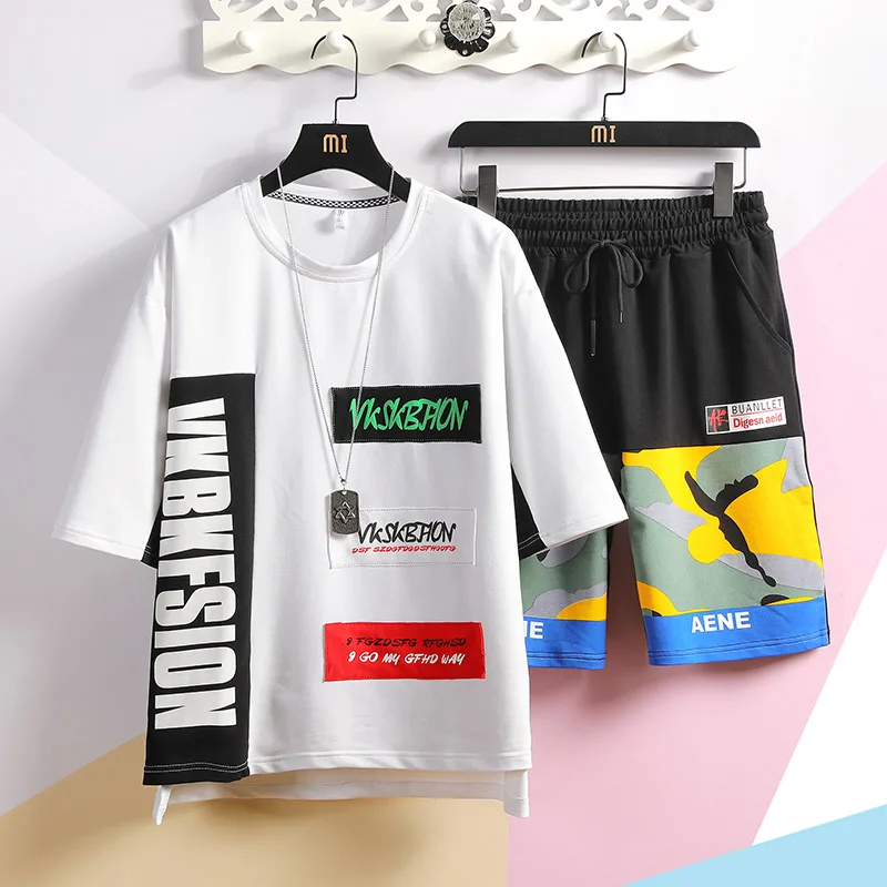 Мужские летние спортивные костюмы, спортивные костюмы в стиле хип-хоп, свободные комплекты, костюмы для бега для мужчин, высококачественные мужские хлопковые комплекты из футболки и шорт