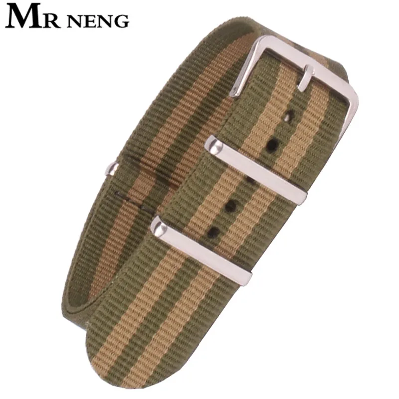 Ремешок нейлоновый для наручных часов, зелёныйЗолотой армейский плетеный браслет Cambo в стиле милитари НАТО, с пряжкой, 18 мм 20 мм 22 мм