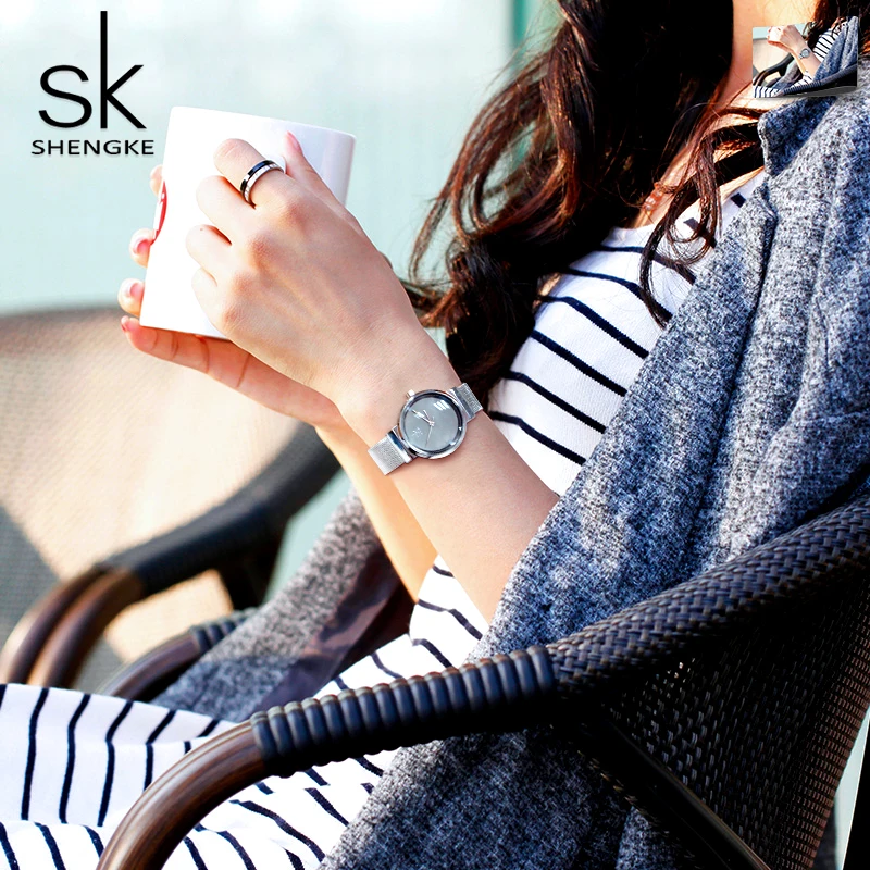 Часы наручные Shengke женские кварцевые, синие, стальные, 2019