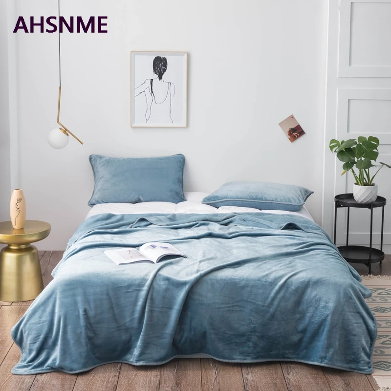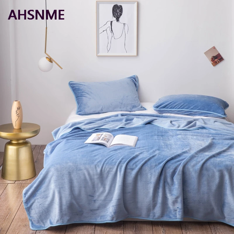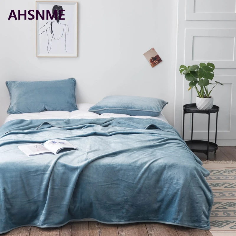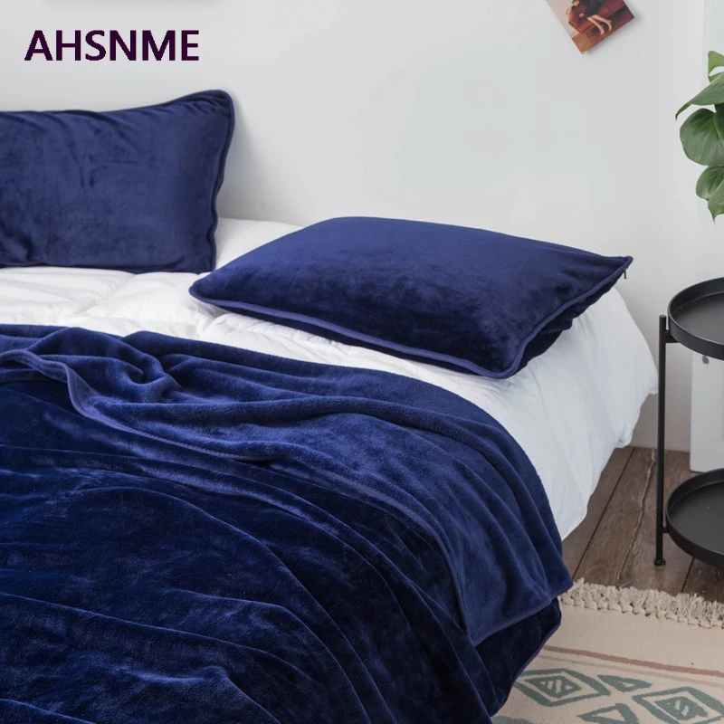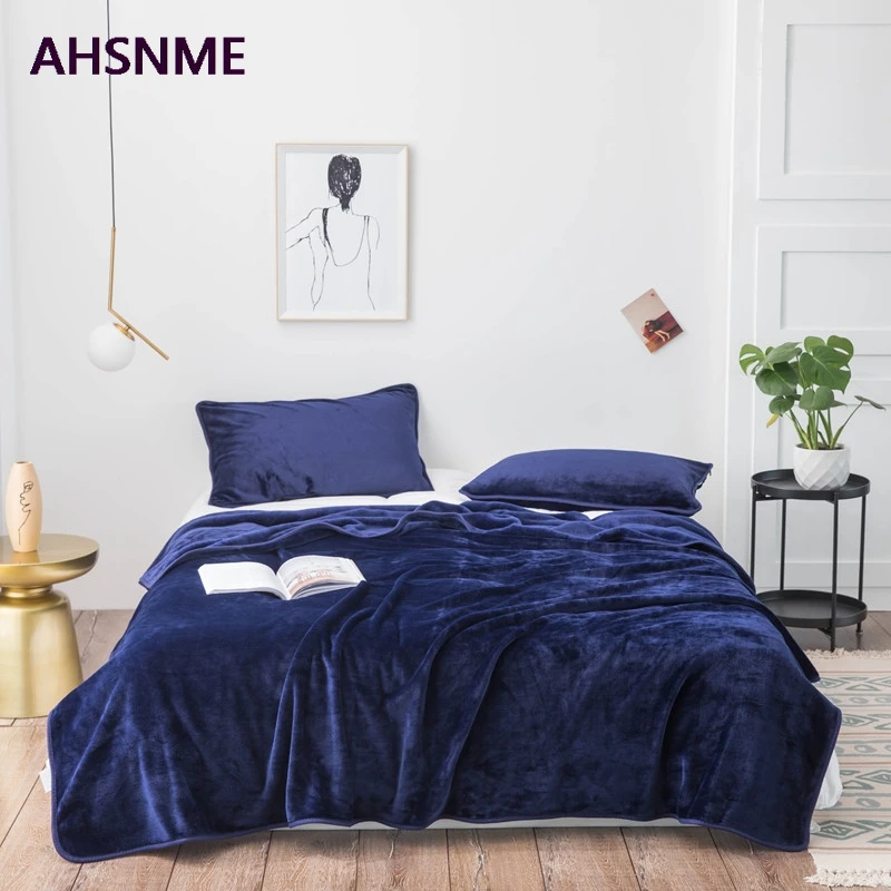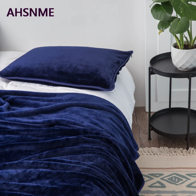 AHSNME темно-синее толстое Коралловое одеяло, однотонное Норковое бархатное одеяло, мягкий диван, разные размеры, высококачественный ковер, Прямая поставка