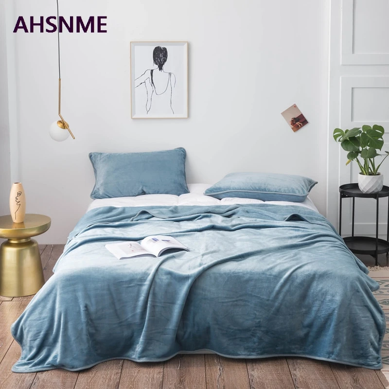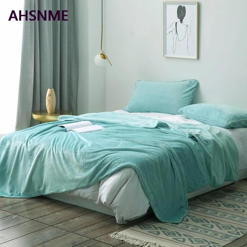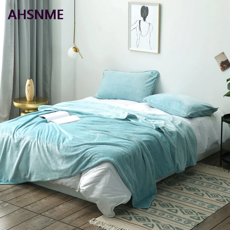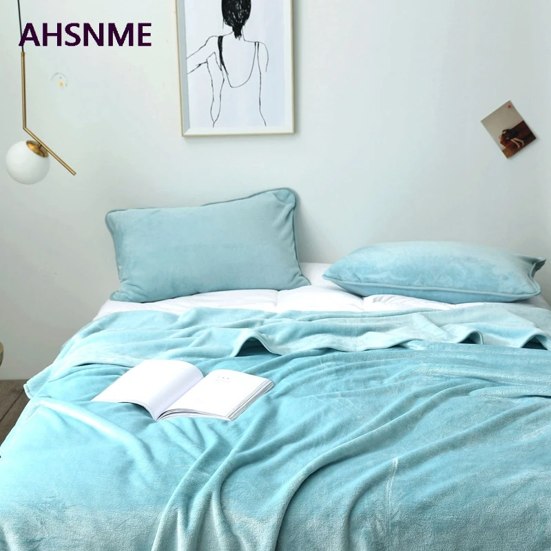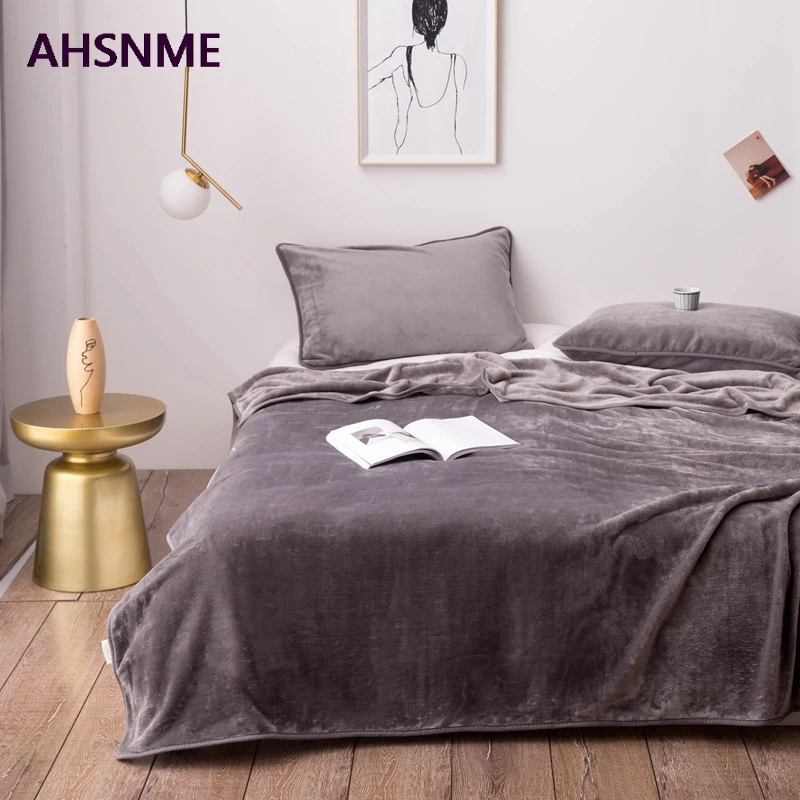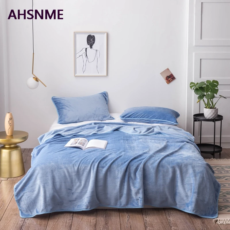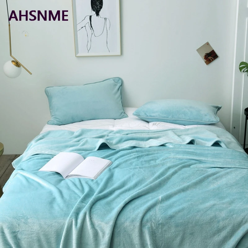 AHSNME темно-синее толстое Коралловое одеяло, однотонное Норковое бархатное одеяло, мягкий диван, разные размеры, высококачественный ковер, Прямая поставка