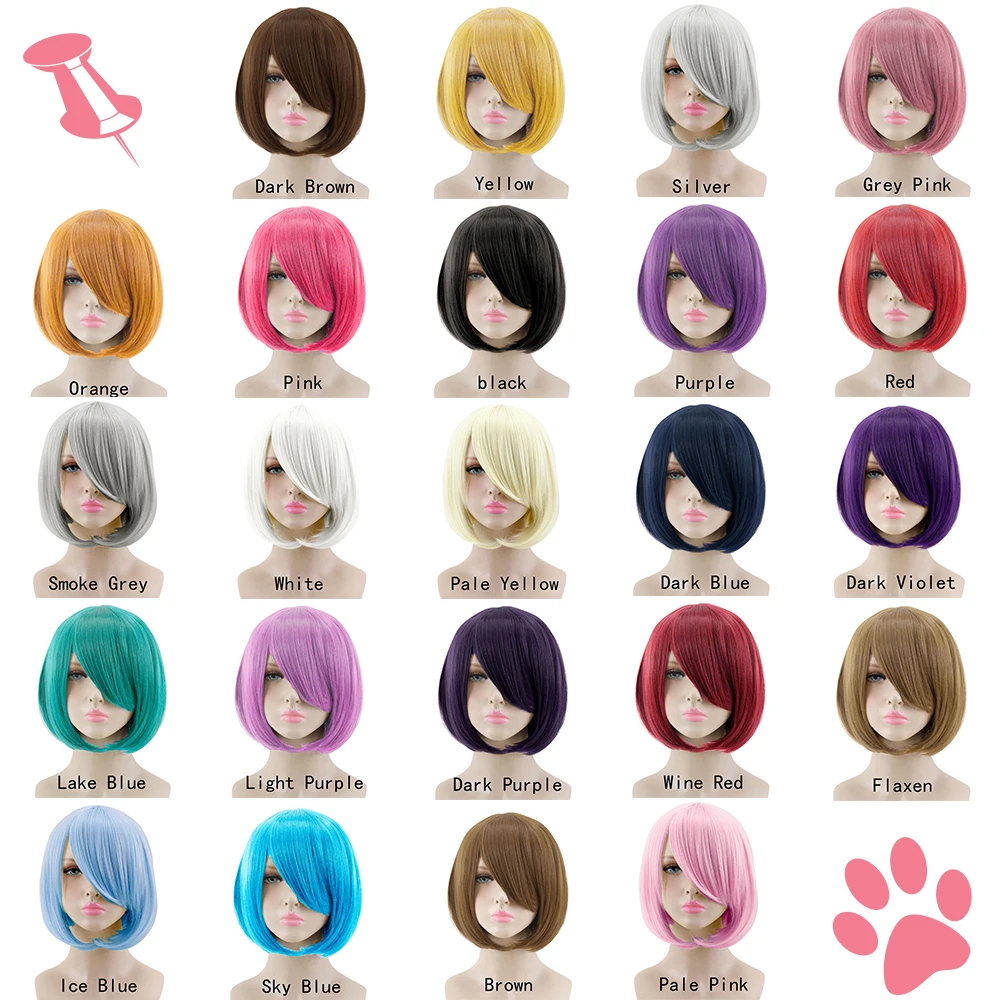 WTB 23 Цвета 14 "короткий прямой парик, коричневый, белый, розовый, высокая температура, синтетические парики, вечерние парики для косплея для женщин