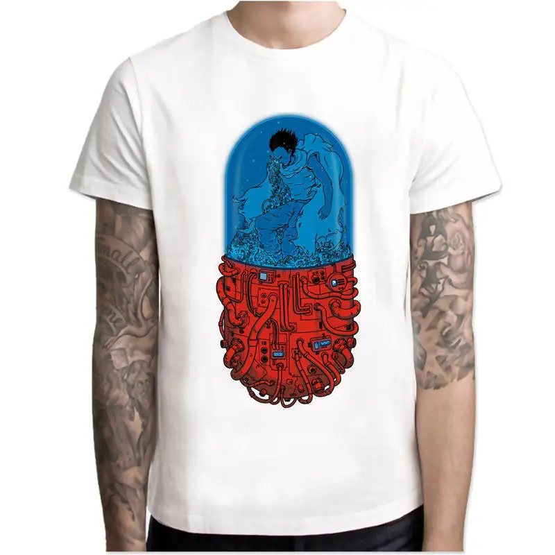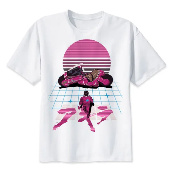 Футболка Akira Synthwave мужская с японским аниме, модная повседневная тенниска с белым принтом, Удобная майка Mr2300, на лето