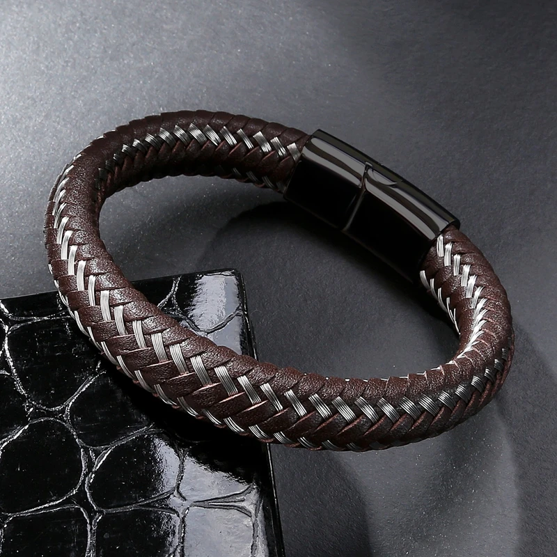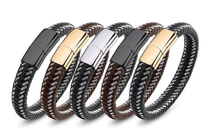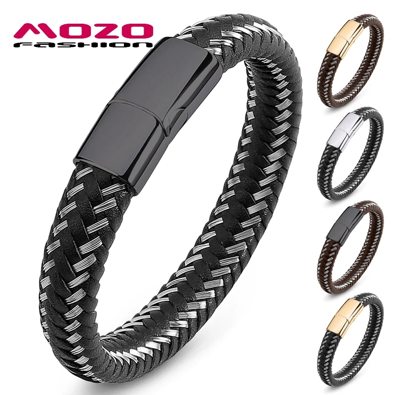 MOZO модный новый очаровательный магнитный Многоцветный мужской плетеный браслет из проволоки и кожи Модные ювелирные изделия унисекс подарки 008