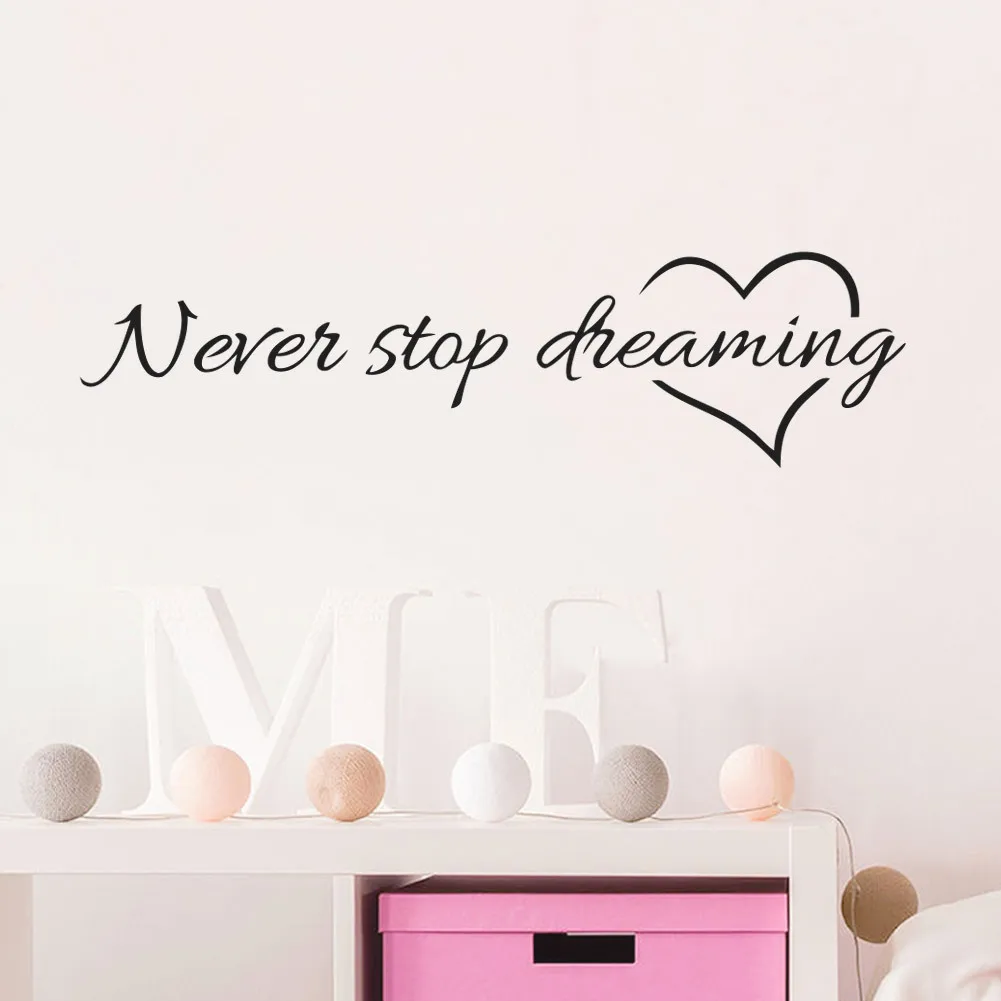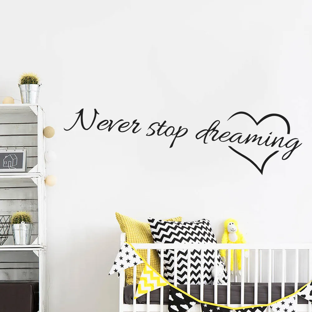 Never stop dreaming вдохновляющие цитаты настенные художественные декоративные Стикеры для спальни diy домашние наклейки росписи художественный постер виниловая бумага