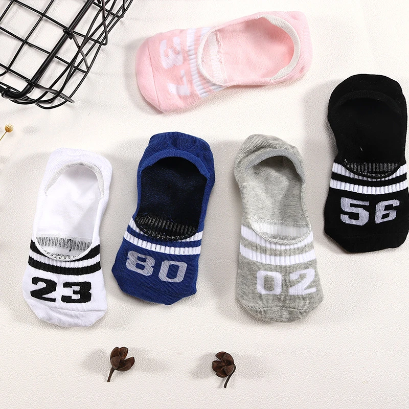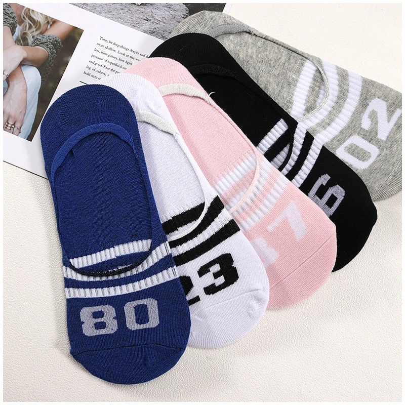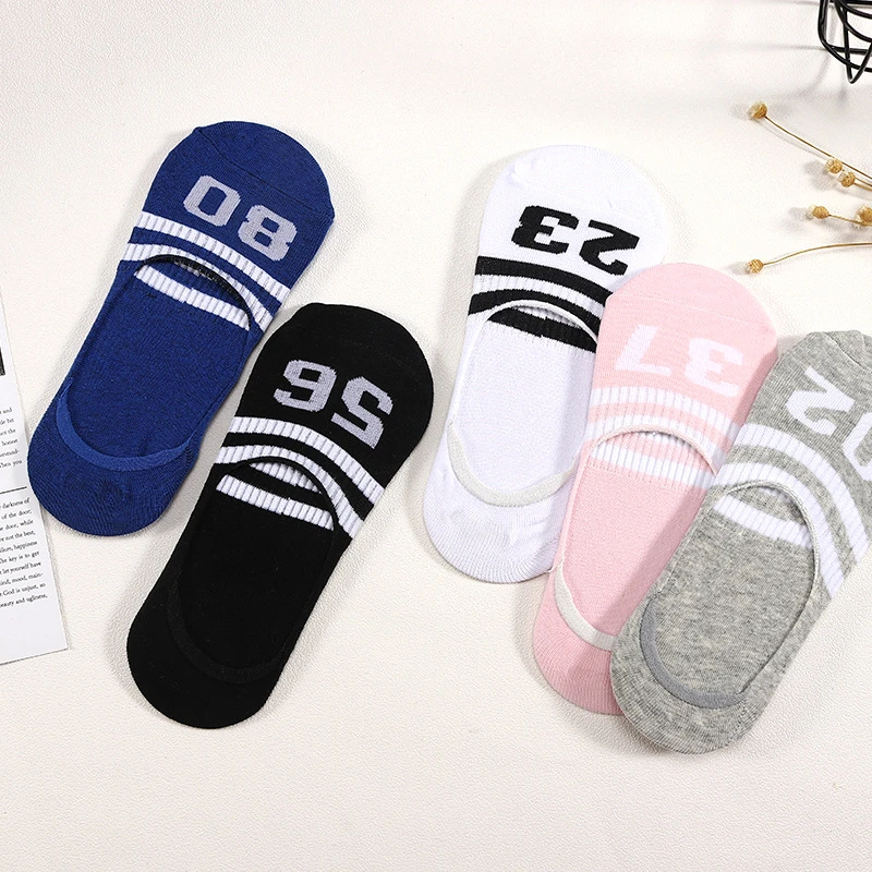 5 пар, женские носки в полоску с цифрами, Женская невидимая стелька, подкладка для обуви, кроссовки, балерины, носки-башмачки, 2022 носки для женщин
