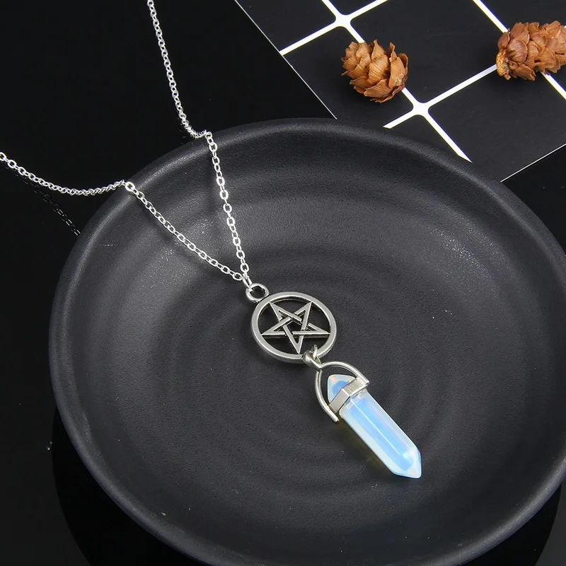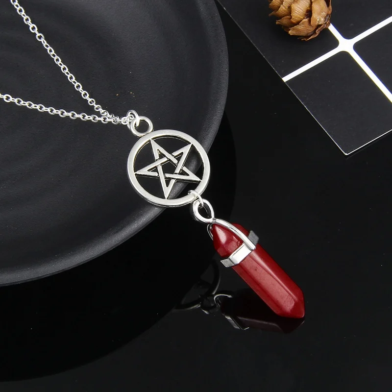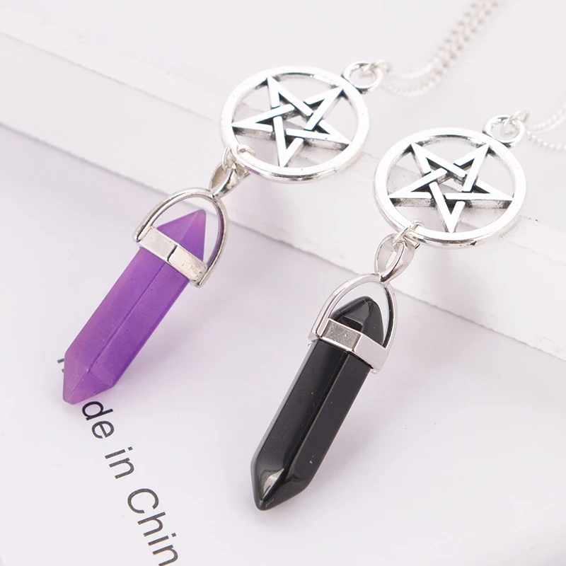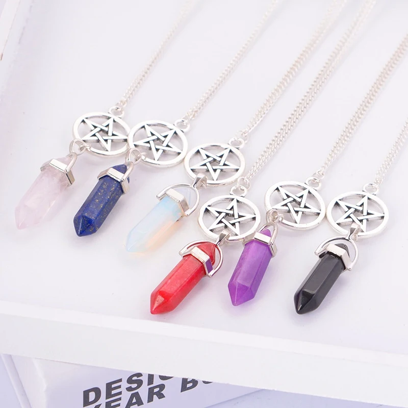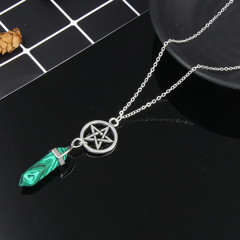 Ожерелье женское из натурального камня, с шестиугольным камнем