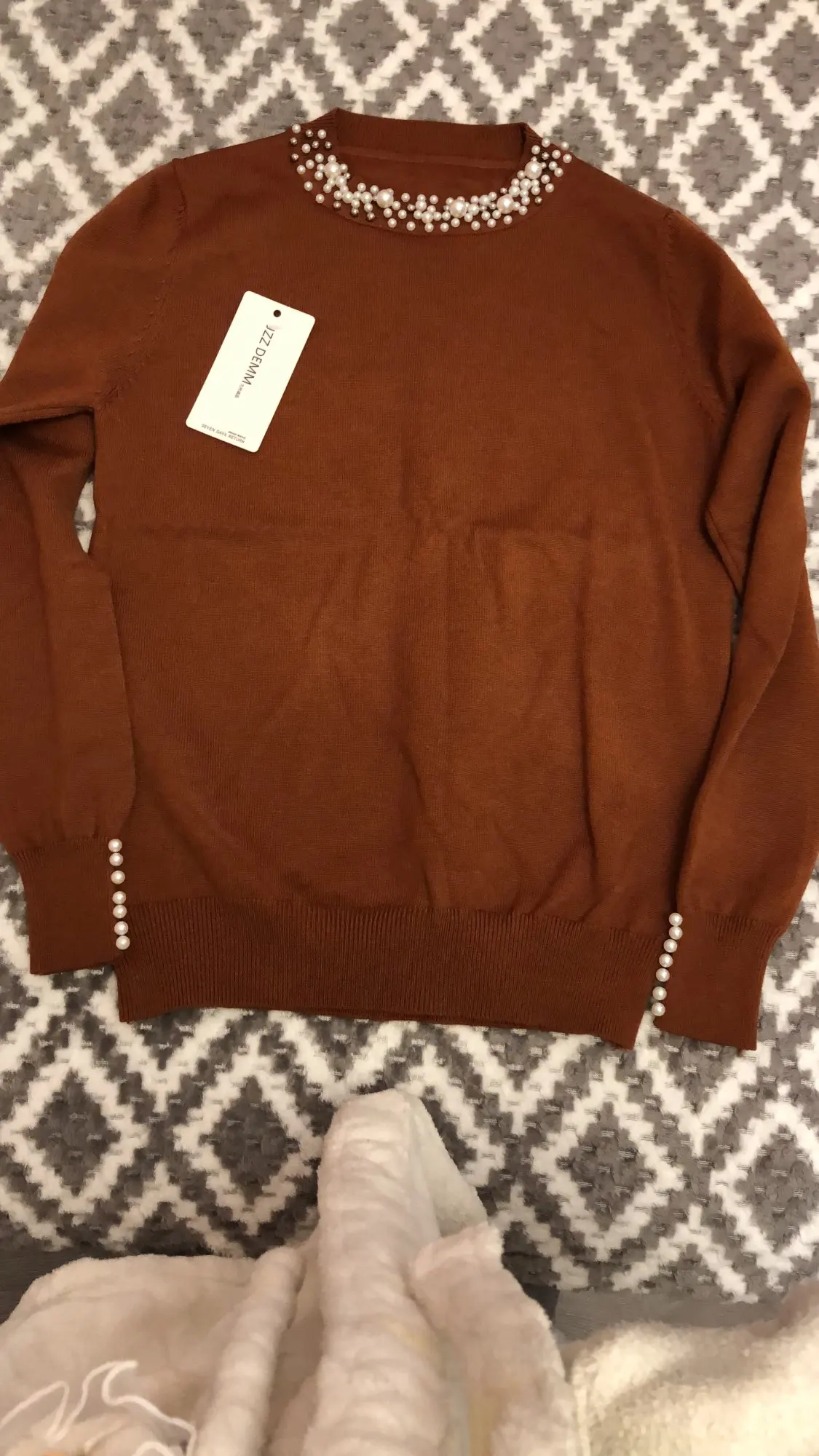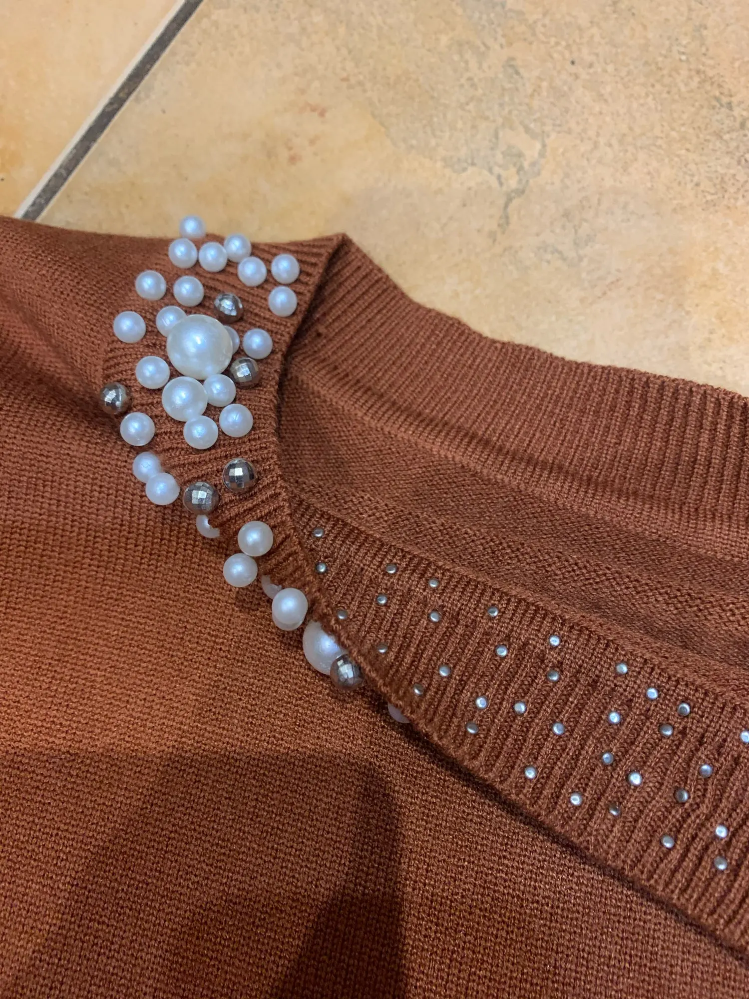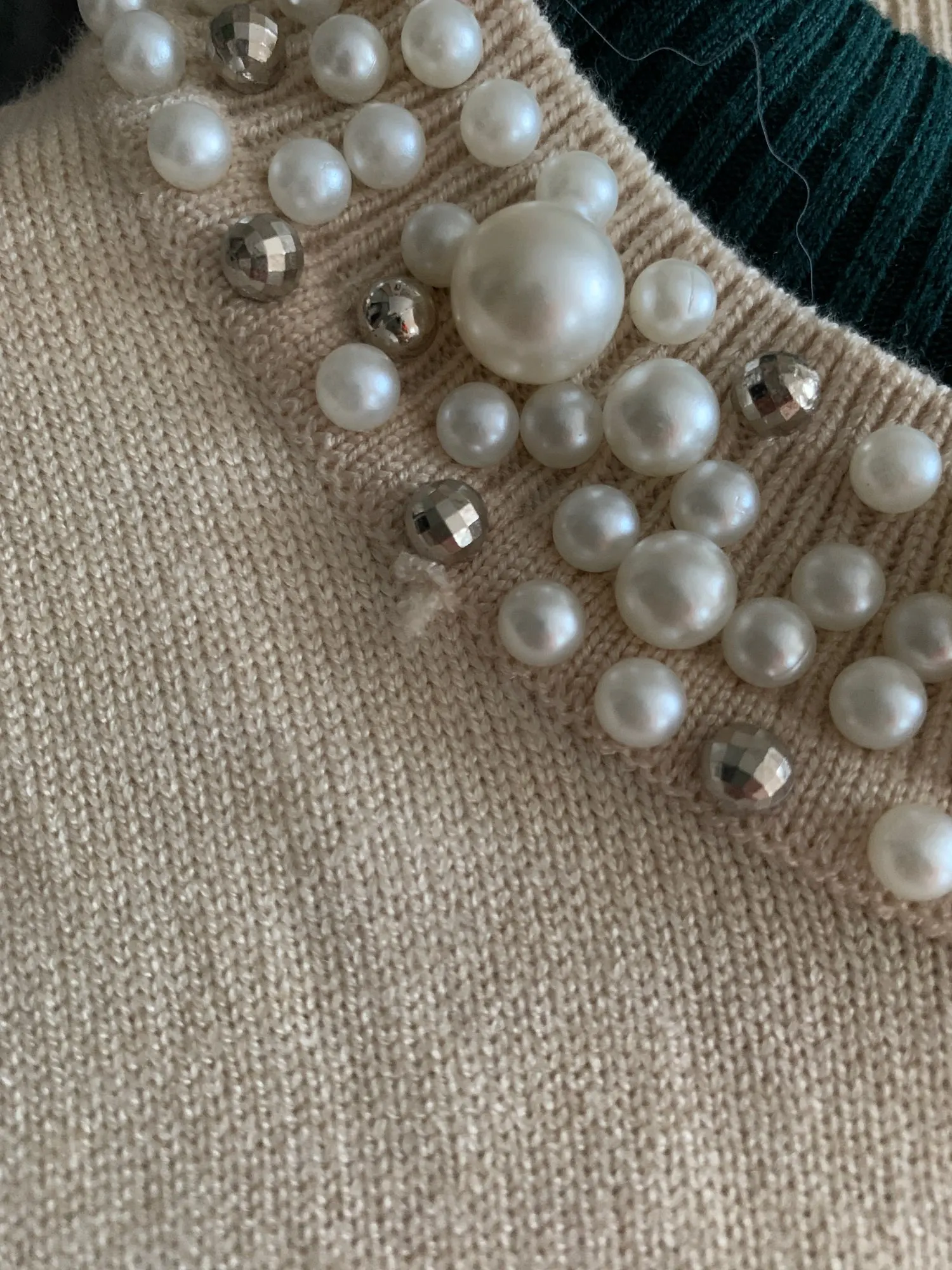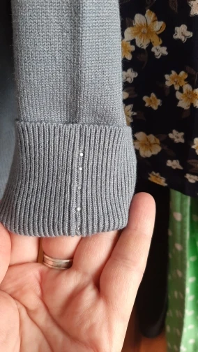 Свитер милый, но более серый, чем синий. В моем отсутствии один большой бисер.