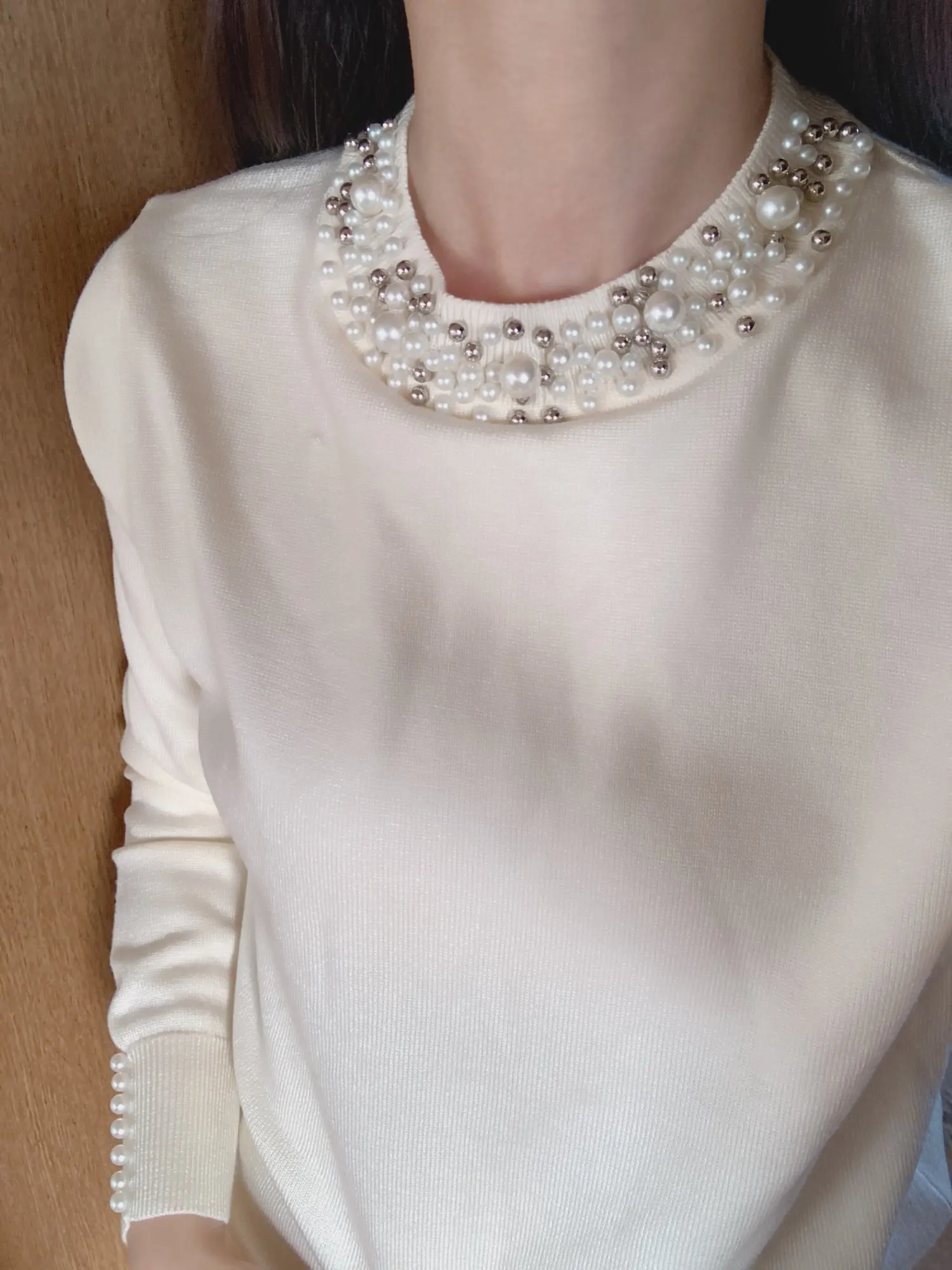 Женский трикотажный свитер с жемчугом, повседневный облегающий пуловер с длинным рукавом, Осень-зима 2022