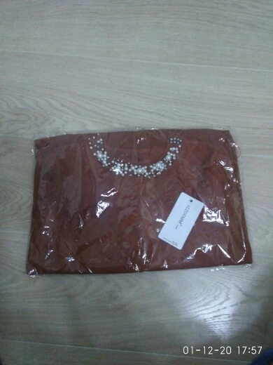 Дошло за месяц,по центру бусина поцарапана.На плечах отсвечивает ткань как заглаженная(( При оформлении был выбор курьером получить или через пункты выдачи,выбрала курьером.Получала все равно на почте обычной посылкой.Никакого курьера.Трек отслеживался полностью.С продавцом не общалась.