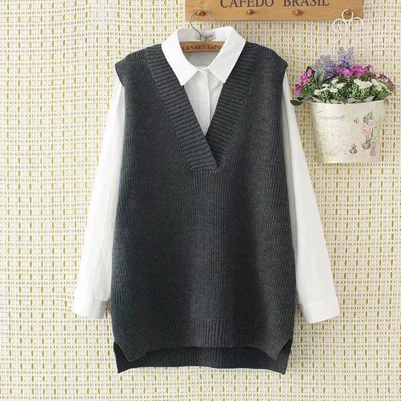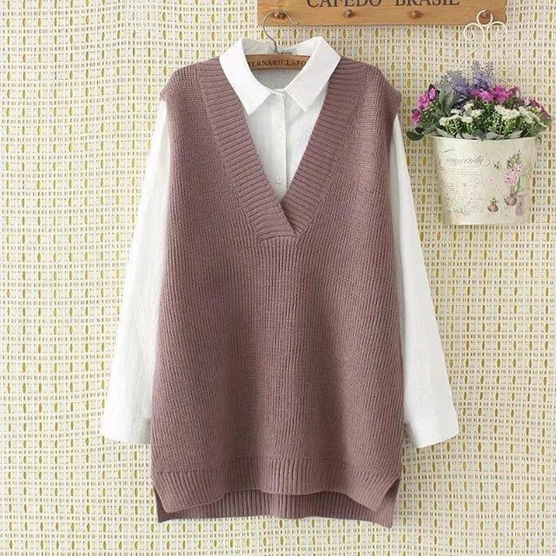 Жилет женский трикотажный однотонный, без рукавов, с V-образным вырезом