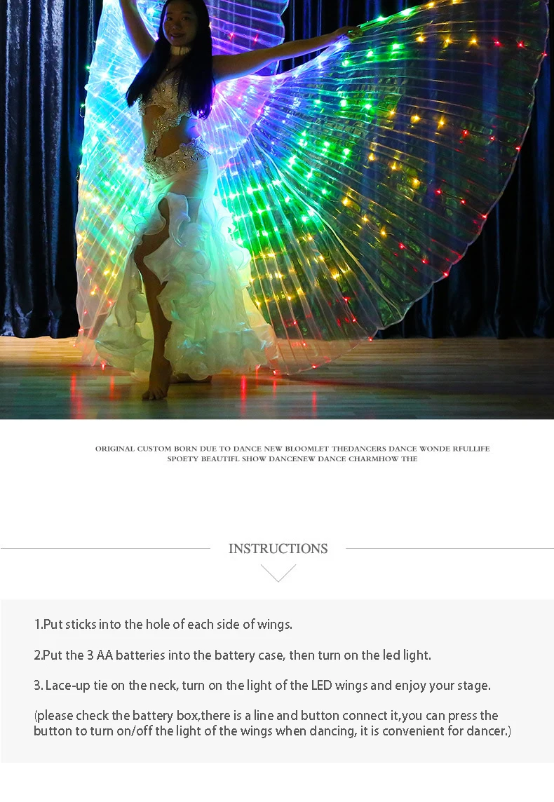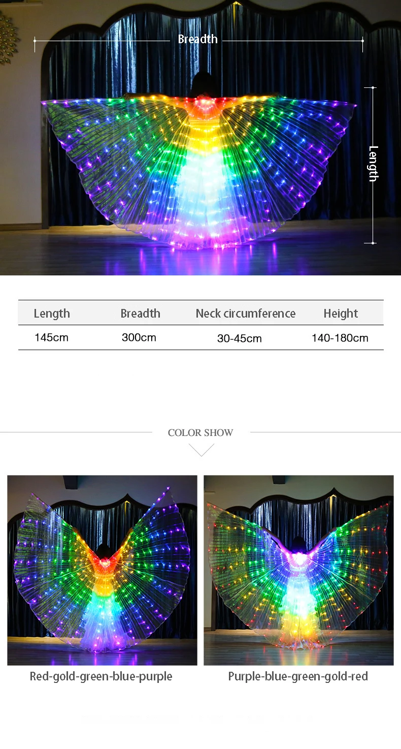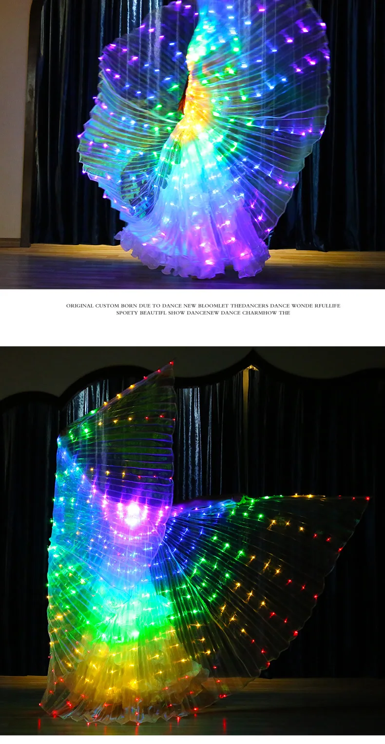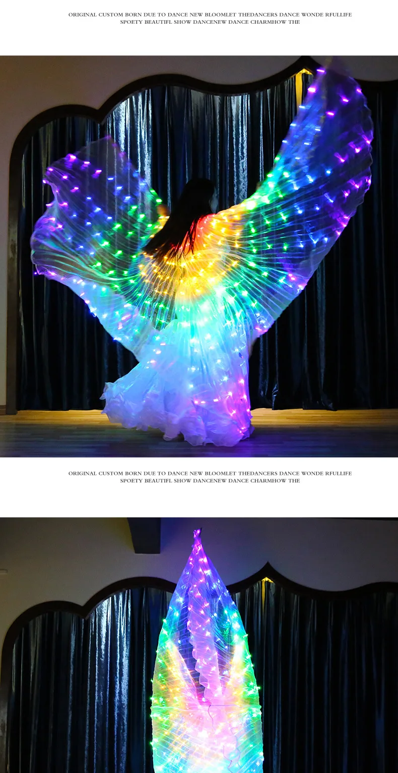 Аксессуары для танца живота для взрослых, светодиодные крылья с регулируемыми палочками, реквизит для выступлений, блестящие Светодиодные Крылья, открытые на 360 градусов # PS003