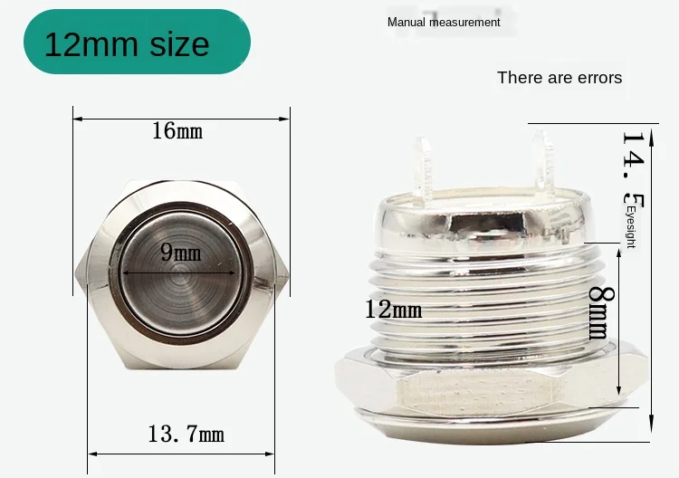 Ультракороткий кнопочный переключатель из нержавеющей стали со светодиодный Ной лампой, 12 мм, 16 мм, 19 мм, 22 мм, водонепроницаемый самосбросМгновенный
