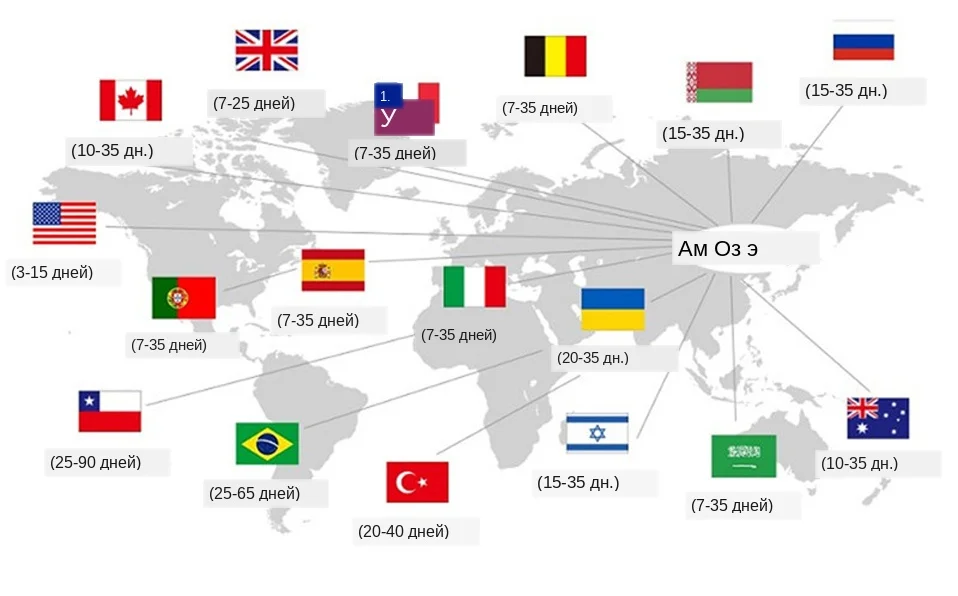 (3) около 10-45 рабочих дней в: все другие страны;