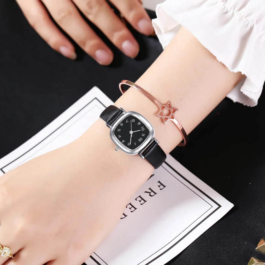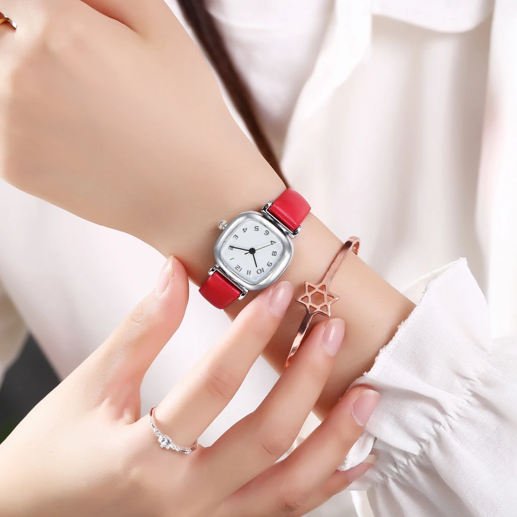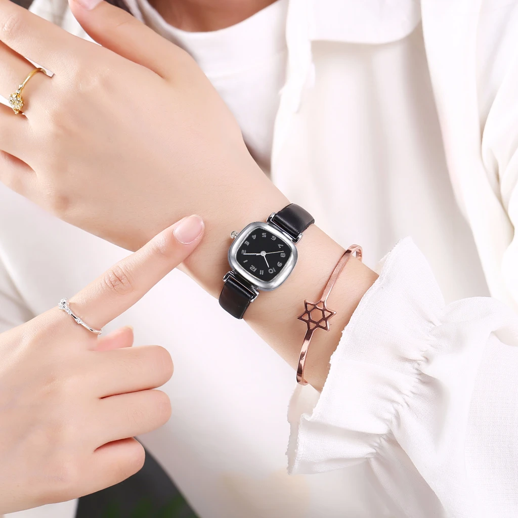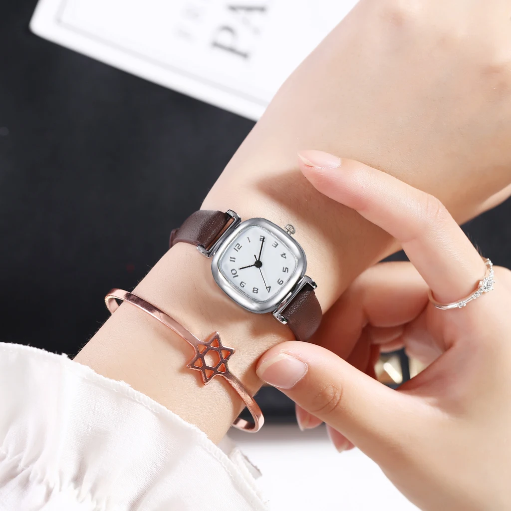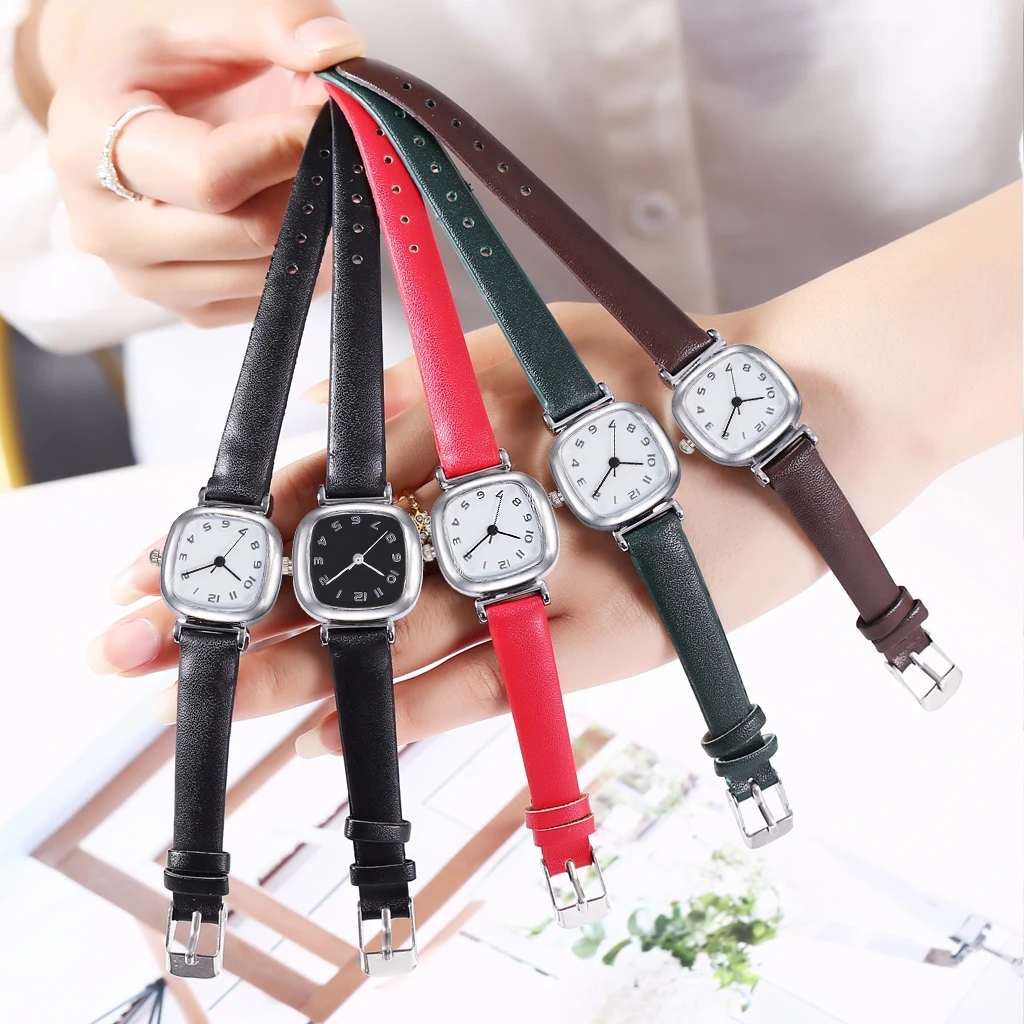 Женские кварцевые аналоговые часы с кожаным ремешком и арабскими цифрами