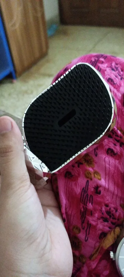 Приятно удивлена качеству расчёски. Есть 3 крошечные вмятины в нижней части, но я их заметила только при фотографировании. Зубья нормальные, если сильно не нажимать - не царапают кожу. Две половинки расчёски держатся крепко, в сумке на распадутся. Упакована была в пластиковую коробку без лого. Посылка доставлена в Самарскую область за 14 дней.