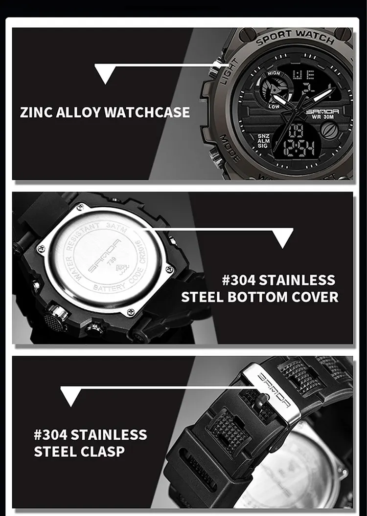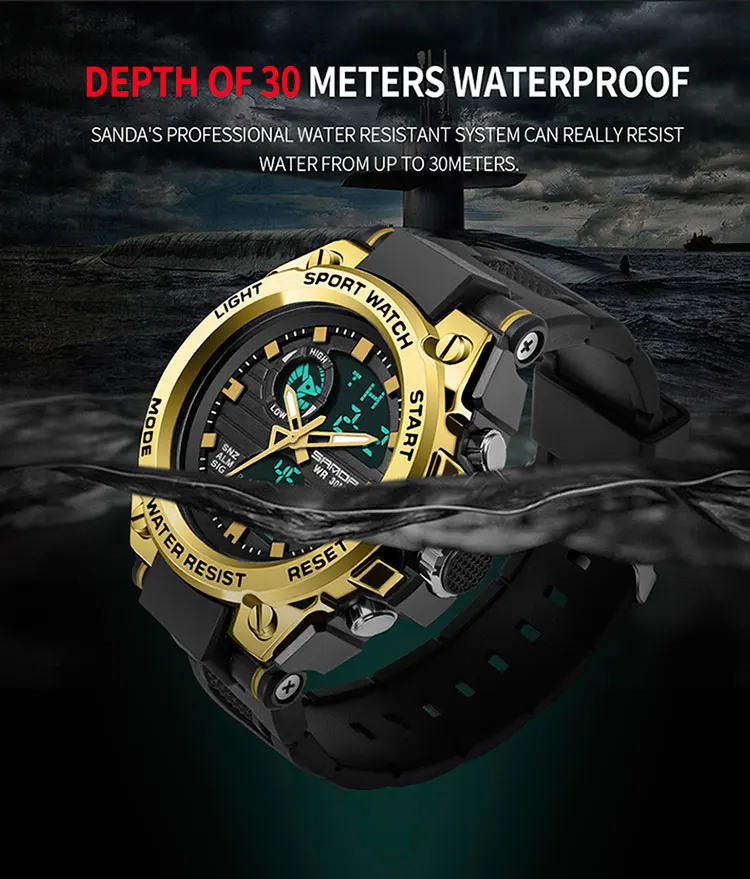 Часы наручные SANDA G Мужские Цифровые, водонепроницаемые брендовые Роскошные светодиодные спортивные с будильником, S-SHOCK