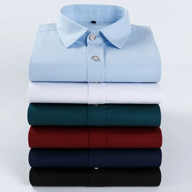 Хлопковые повседневные рубашки для мужчин, однотонная Классическая ...
