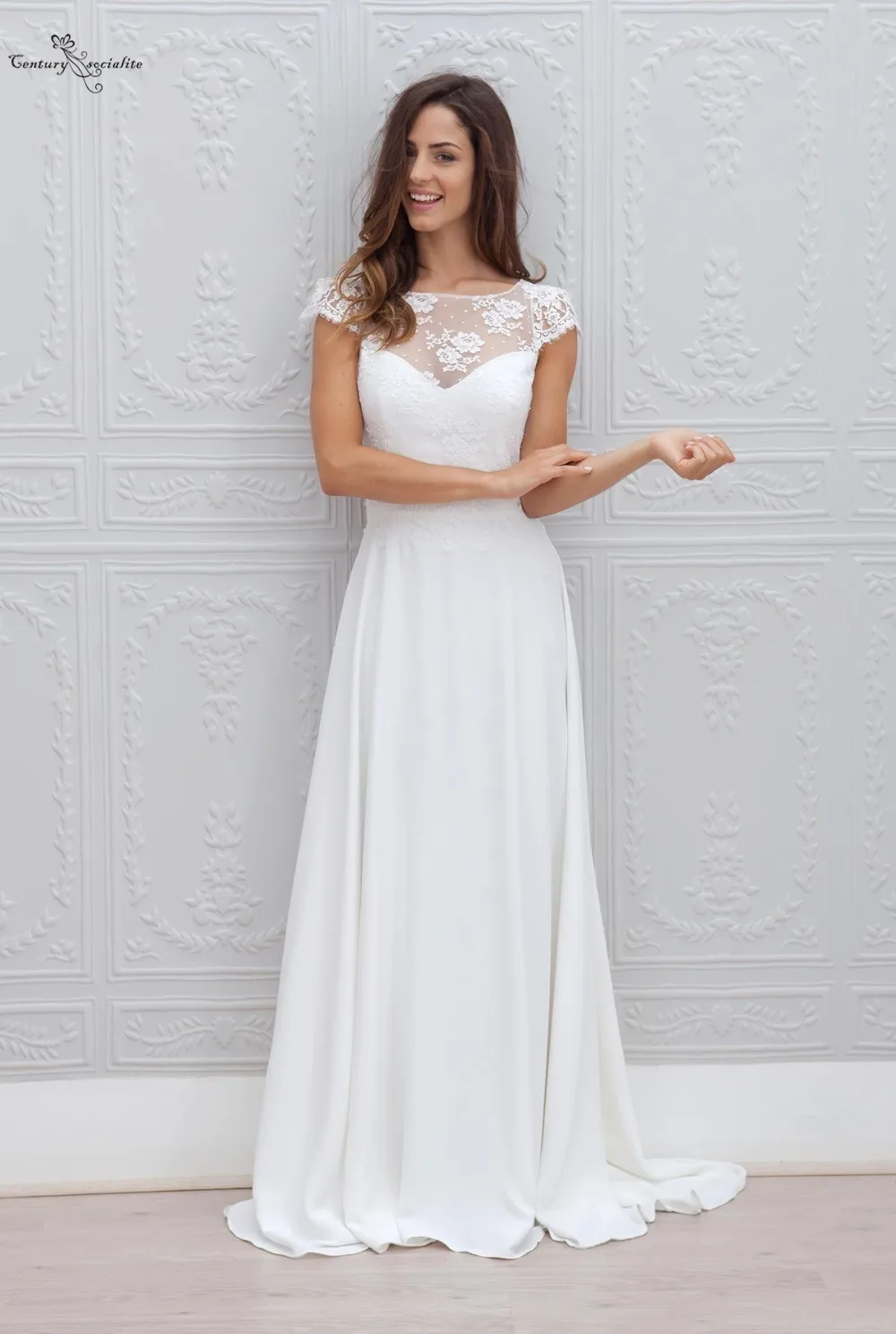 Кружевные свадебные платья в стиле бохо 2020, свадебное платье с открытой спиной и рукавами-крылышками, простые свадебные платья, платье невесты, Дешевое платье