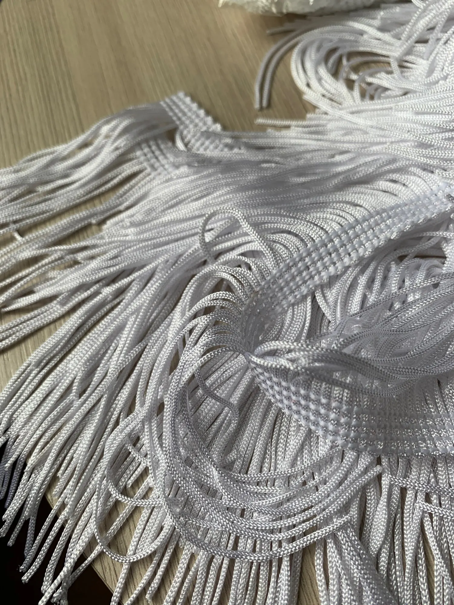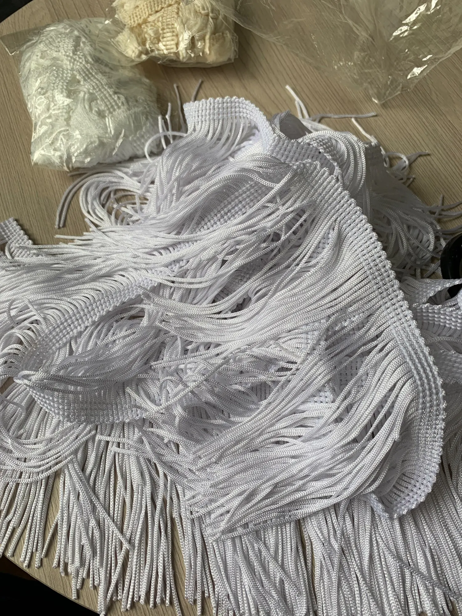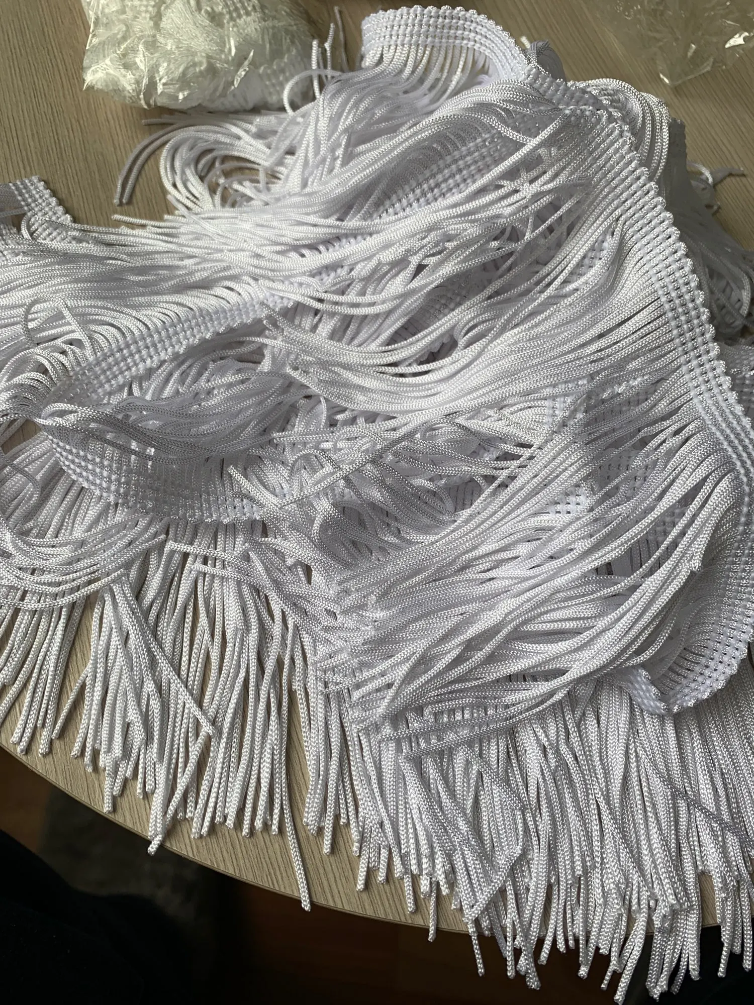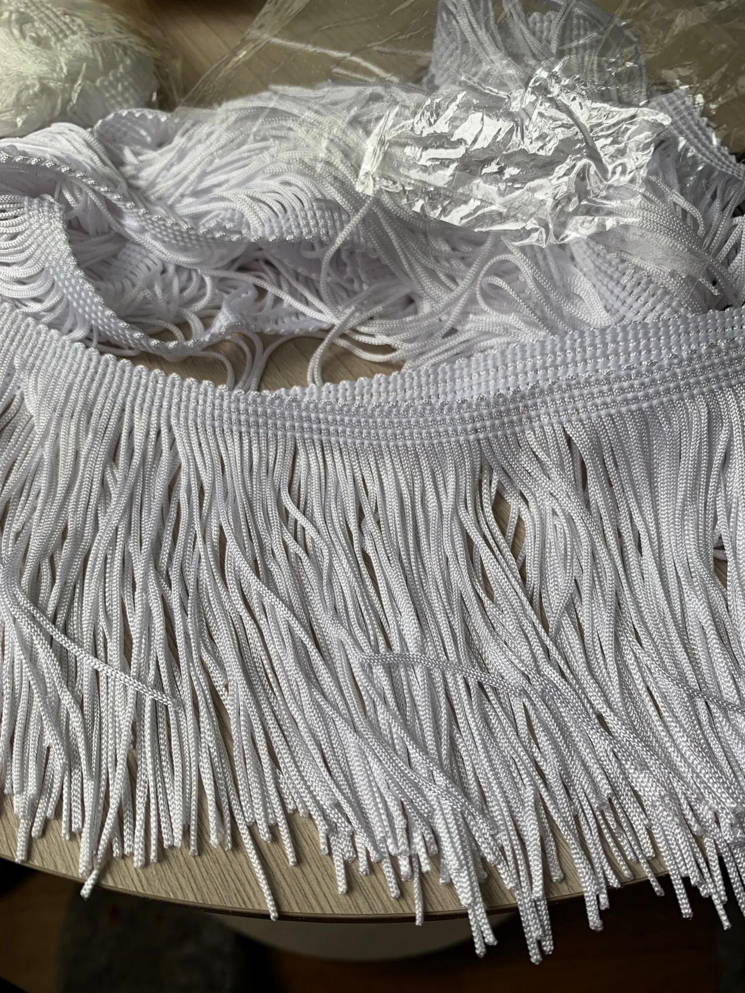 Хорошая бахрома. Длина 10 см. Чисто Белая, шелковистая. Мне надо было 3 метра, делала разными заказами, что бы доставка бесплатная была. Продавец молодец прислал одним куском почти 3 метра. Спасибо ему. Рекомендую. Теперь заказала ещё красный цвет.