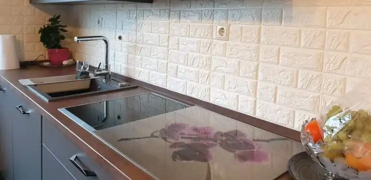Описание точное, изображению соответствует. Товар был отправлен почти через две недели после заказа. Оклеили комнату на даче. Справилась моя пожилая мама самостоятельно! Ей даже понравилось этим заниматься ) Посмотрим, как панели поведут себя зимой. Хотим заказать на дачную кухню. Спасибо продавцу и магазину, рекомендую!